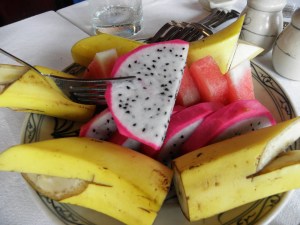 Fresh fruit, including dragon fruit (also known as pitahaya)