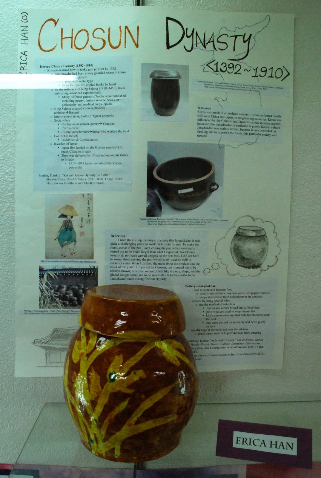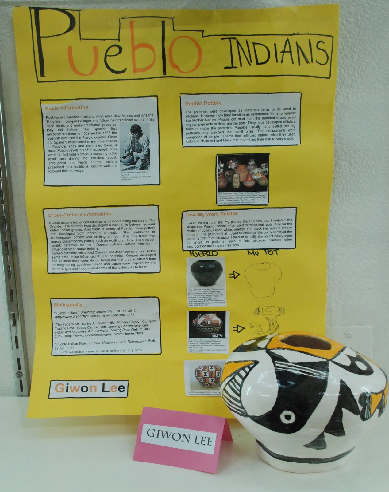 Each student chose a culture from around the world or from a time in history and researched the importance of ceramics in that time and place.