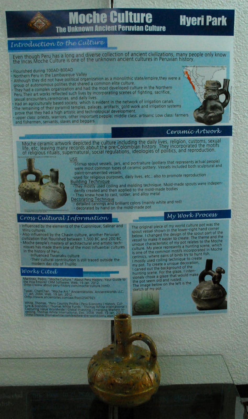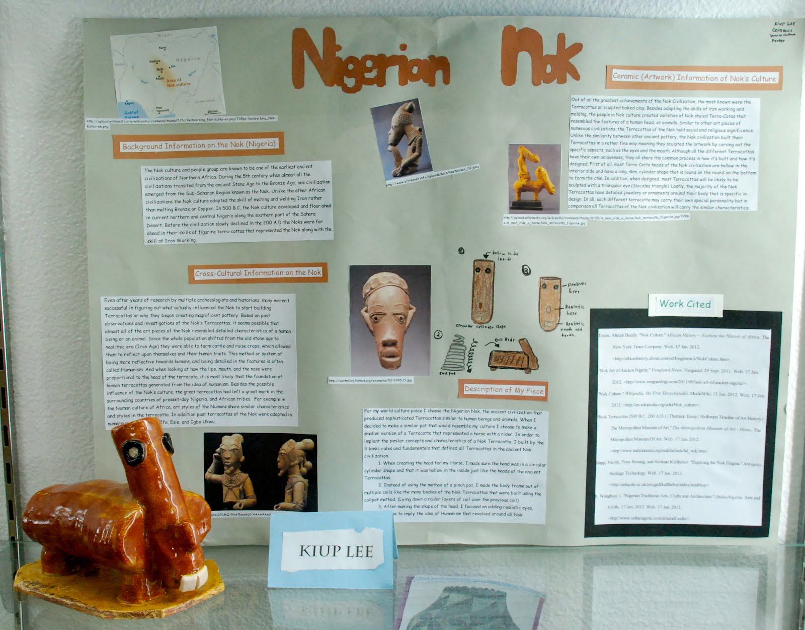 They were expected to create an informative poster with general information about the culture they chose and detailed information about the art of the culture.