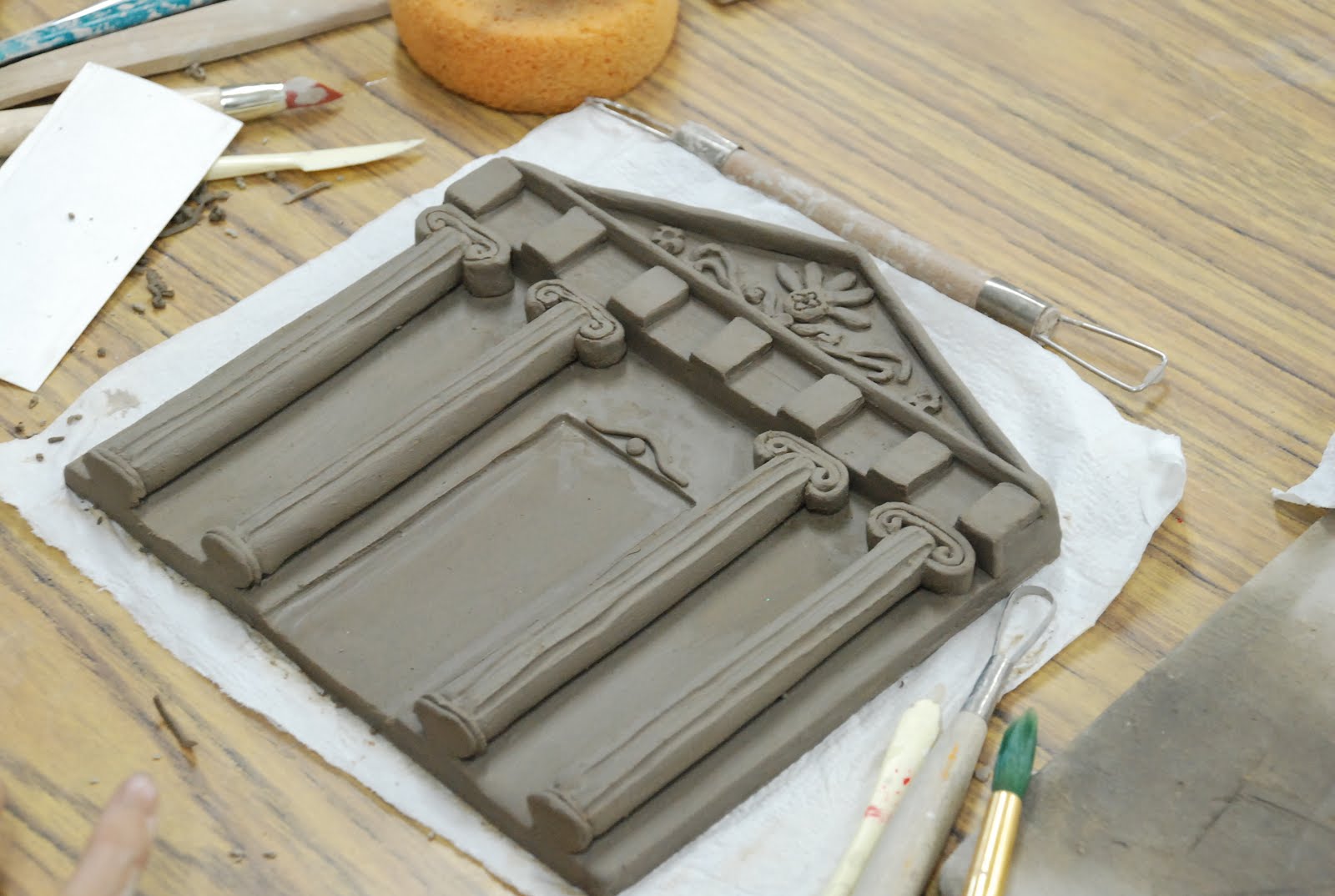 Each student is creating a slab puzzle container based on a theme of their choosing. That means they are expected to build an enclosed box and then cut the top off to create a lid that fits like a puzzle. We are also focusing on additive and subtractive relief.