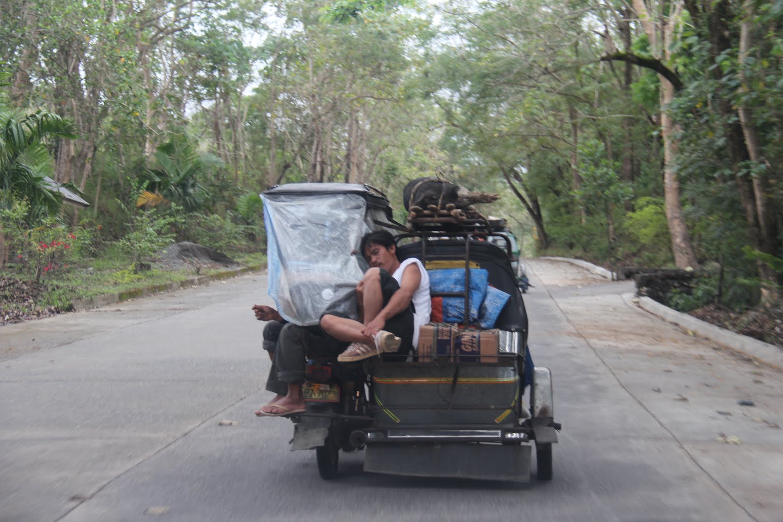 On the way to Banaue we saw a lot of trikes driving around but there were multiple ones that had a pig strapped to the roof. This pig is alive and surprisingly calm.