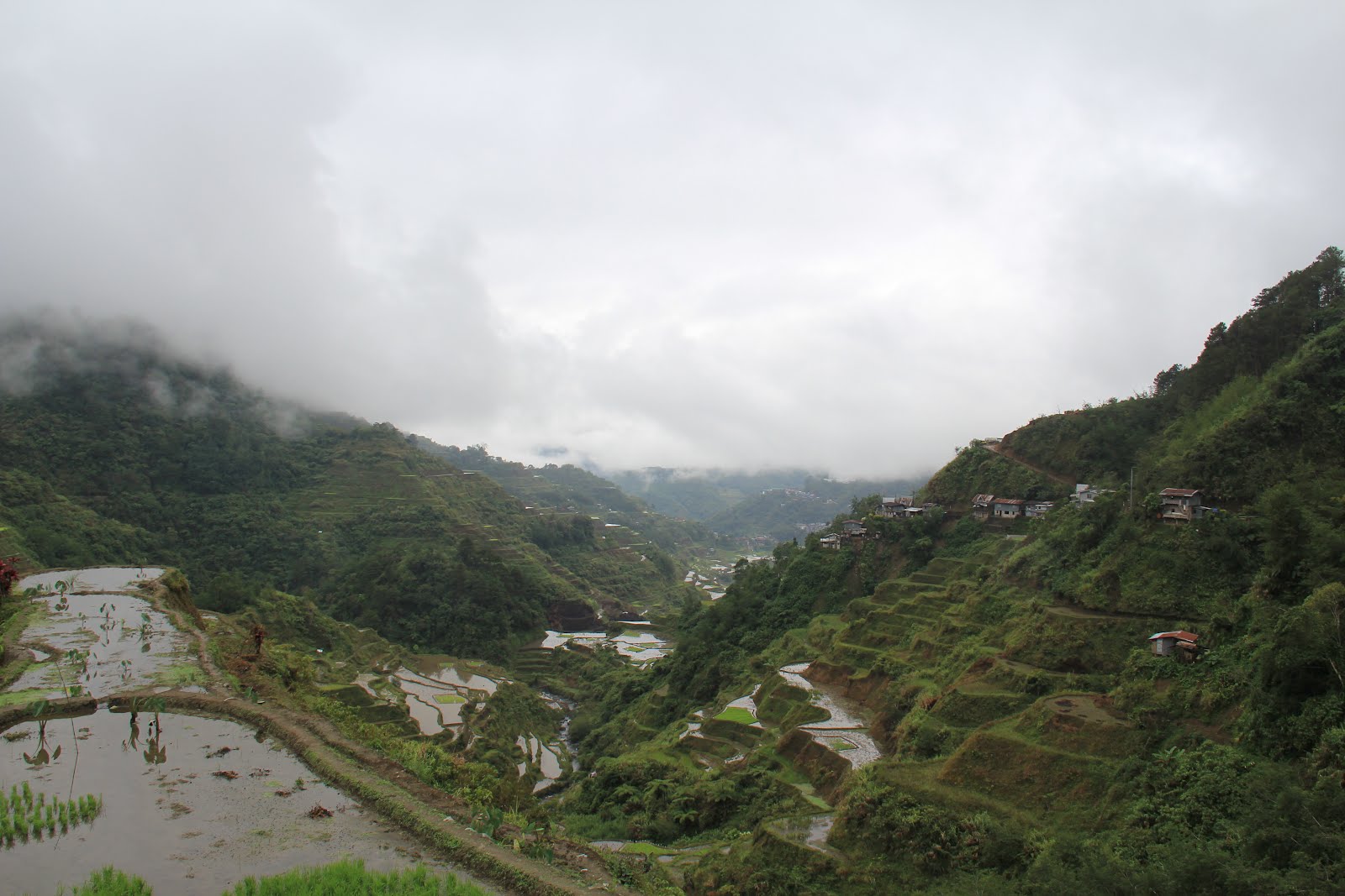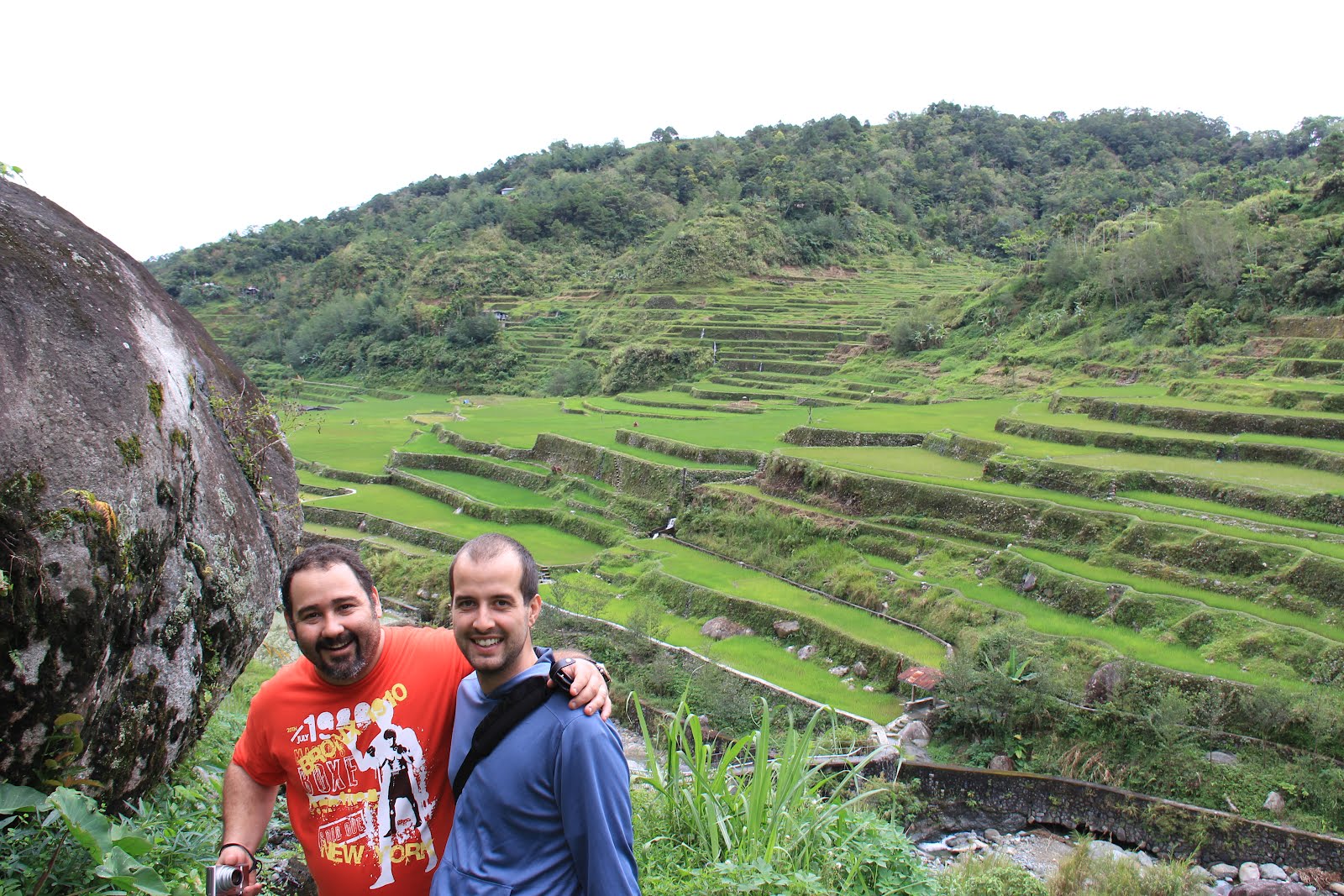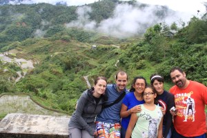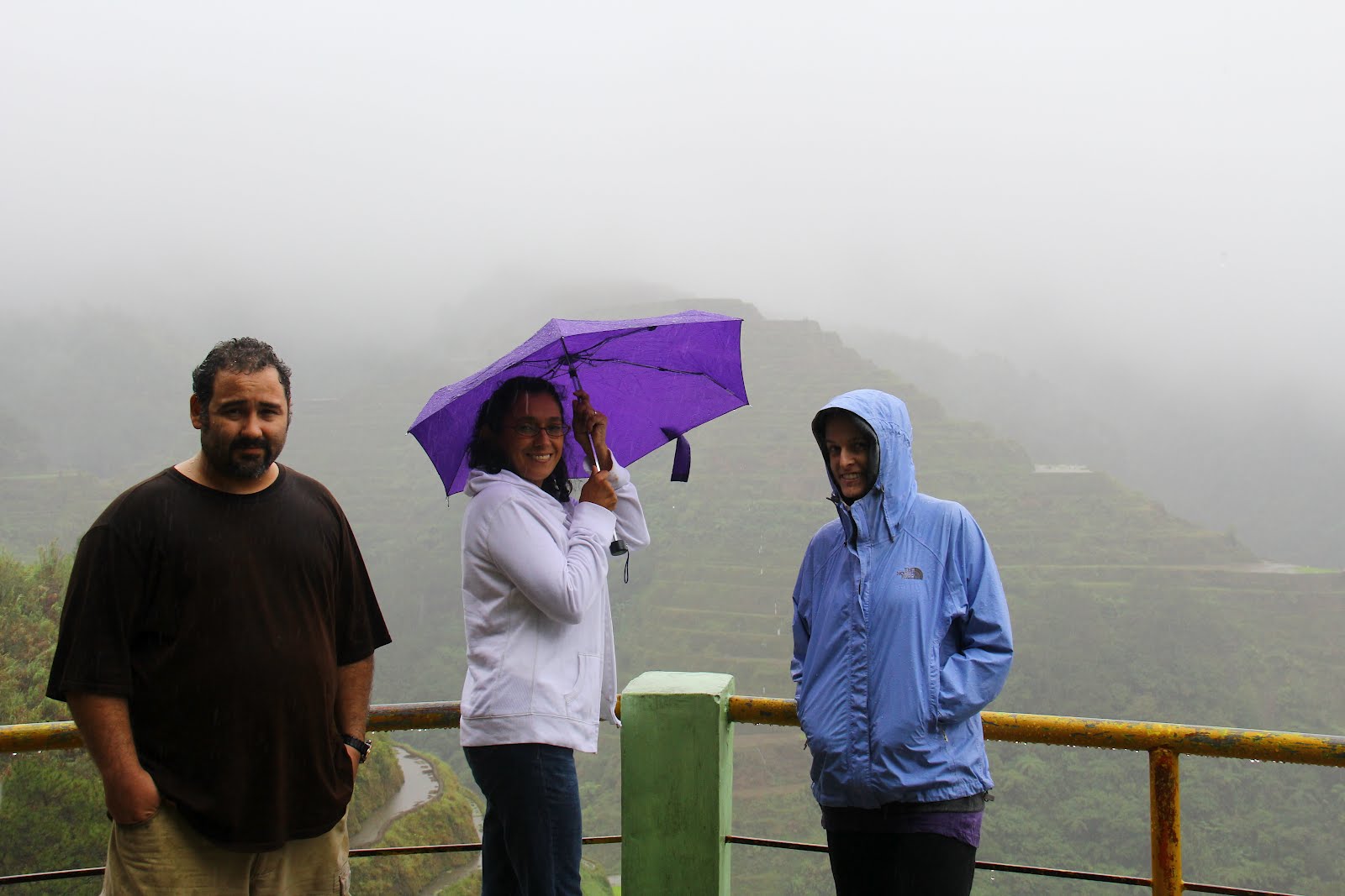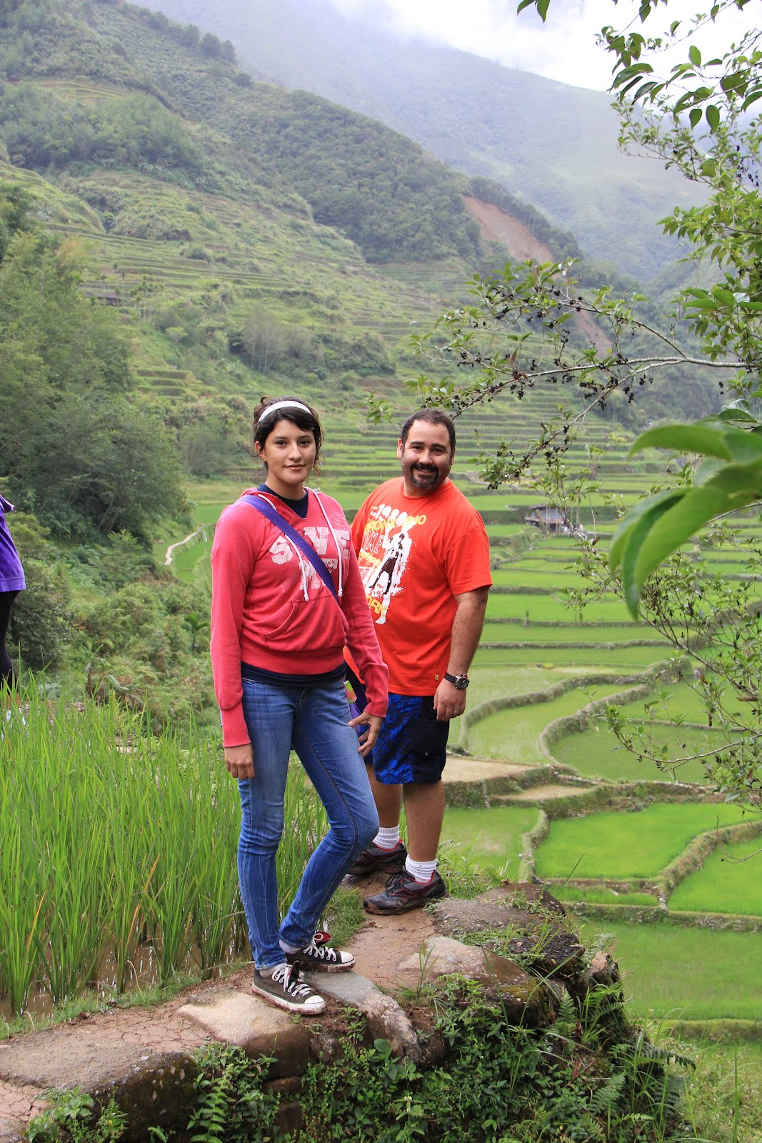 This spring break we headed to the Philippines to visit Ximena and Daniel as they are now living in Subic. The took off a couple of days to go site seeing with us and drive us all around Luzon. They took us to what turned out to be the coolest part of our trip which was Banaue. While Luzon might not be a gigantic island it is quite mountainous making getting from Subic to Banaue a much longer trip than it looked like it would be on the map. The ride there took longer as we swung through Bagio. We spent the night there and took in some sights from the hills. We didn’t spend too much time there as we were getting nervous as to how long it would take us to get the rest of the way to Banaue as we were receiving conflicting predictions as to how long it took to drive. When we finally got to Banaue the weather was overcast but we tried to make the most of it by heading out to the viewpoints. Unfortunately we didn’t get much of a view. We swung by the local museum which was tiny and got some background on the early residents of the area. It turns out that they were very short and were fairly militaristic, other than that we didn’t get much info. The following day we hired a Jeepney to take us to see some of the terraces and to hike through them. A Jeepney is a jeep that has been constructed by a local mechanic. We were told we were going to need one as the roads weren’t passable in a car. As we took off on the paved road I thought we had been had, it was at about this point that we started going off road and I quickly realized that there was no way we would have been able to drive it alone, especially as the road turned into mud and narrowed to a one lane road at times. The jeepney took us to our starting point and then our guide Alex(and no I am not referring to myself in the 3rd person) took us for a walk through the rice terraces. He pointed out different insects and explained to us how they used snails and fish as natural ways to prevent pests and weeds. He explained to us how the oldest son would usually get the largest and best terraces and that was why he as a younger son had to find an outside source of income. He also mentioned that it is highly frowned upon to sell terraces to outsiders. The tour was beautiful and one of the coolest things about these terraces is that some of them are 2000 years old and they are still in use. The notion that terraces from the time of the Roman era could survive so many years is amazing.