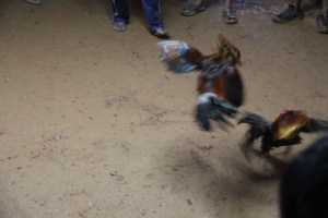 The two cocks going at it. I wasn’t allowed to use a flash, made it hard to get good action shots.