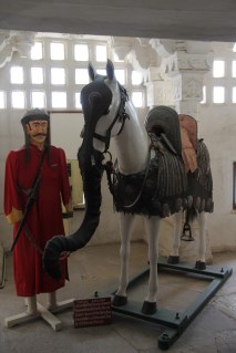 | The palace had paintings of elephants, camels, and horses. Elephants were widely used in both ceremonies and war in the Rajasthan area. |