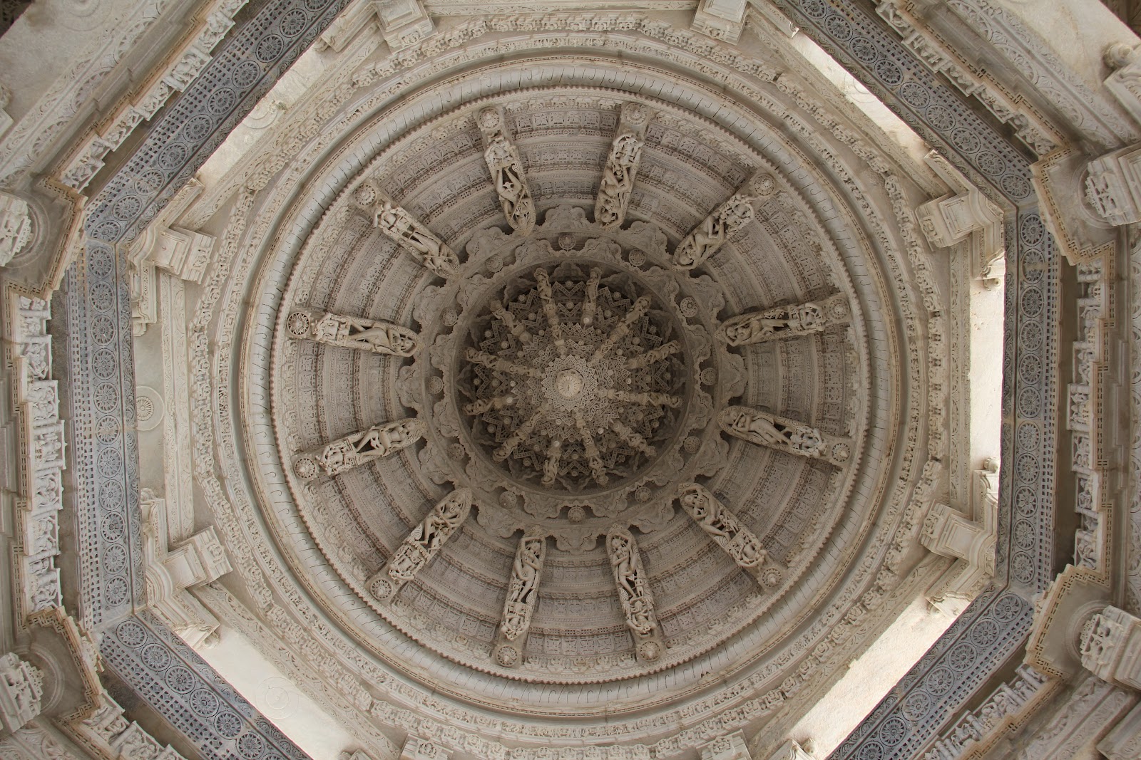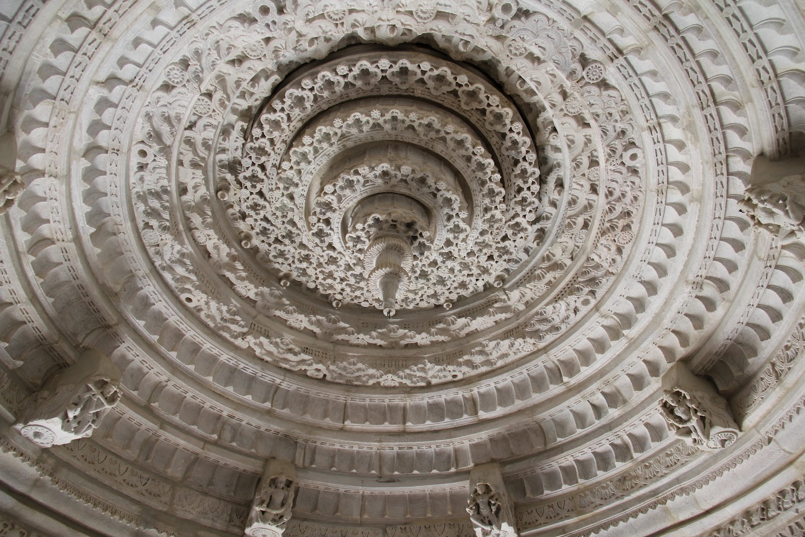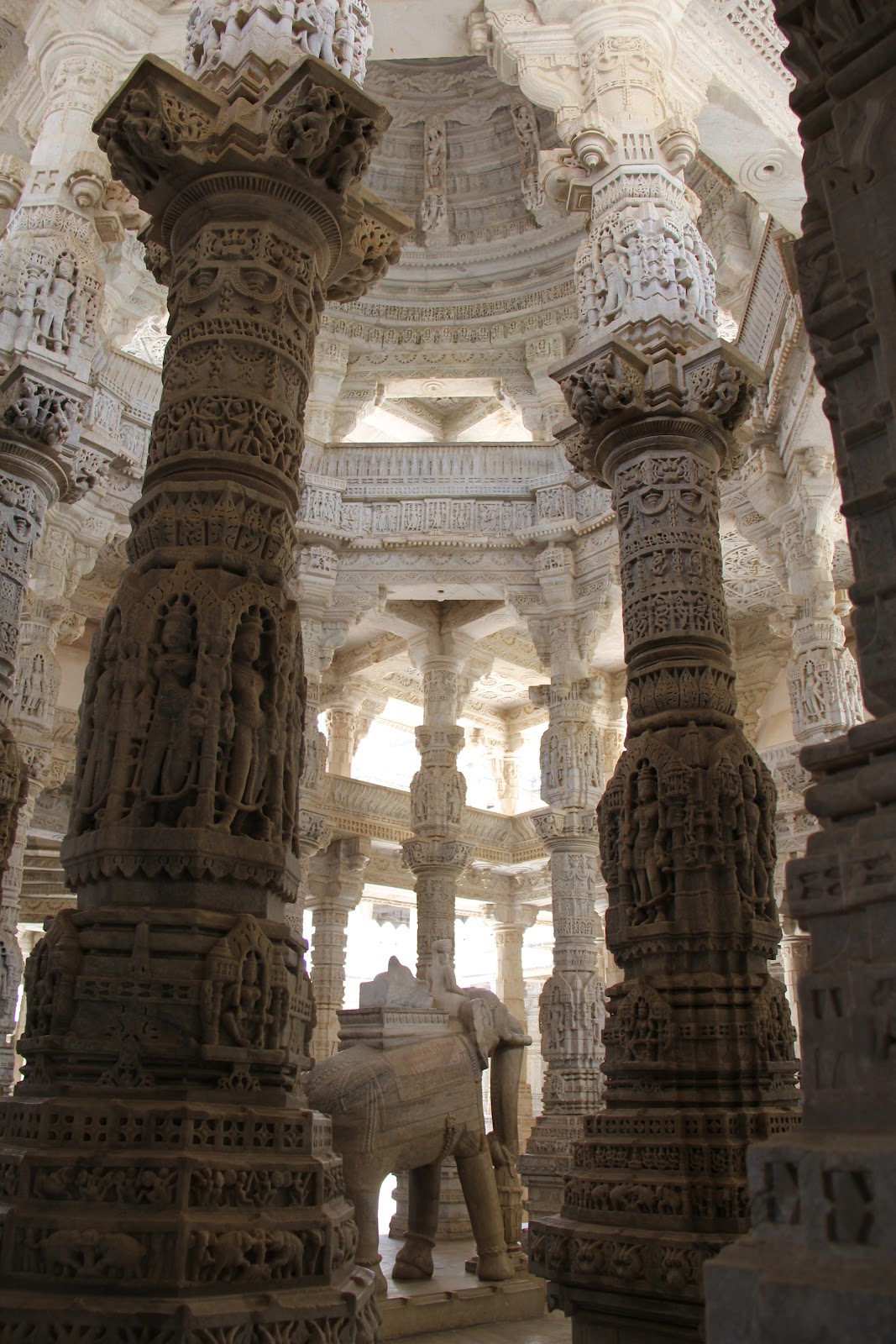Ranakpur was constructed in the mid 1400s and was definitely worth the pants and muumuu. The carving of the columns and ceilings was amazing. It reminded me a lot of Angkor Watt in style but only one temple with detail on every surface. We wandered around and looked at everything, although I felt unsure of what was appropriate protocol as it is a working temple. The center was off limits to us but we were allowed to take pictures. Our home stay would later explain to us that you have to bathe and cleanse yourself, then dress in all white in order to enter the center. He also explained that women who are menstruating are not allowed into the center either. Not really sure why he threw this last gem in there but “The more you Know” right? How someone would know this I don’t know. Since I was anything but clean, and the sweating was constant which would have made white clothes see through we merely looked into the center without crossing the ropes. Enjoy the pictures as we tried to capture the impressiveness of the temple.
