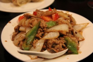 | Wild rice stem with chinese bacon. Not my favorite but an interesting taste and chance to try a different food. |