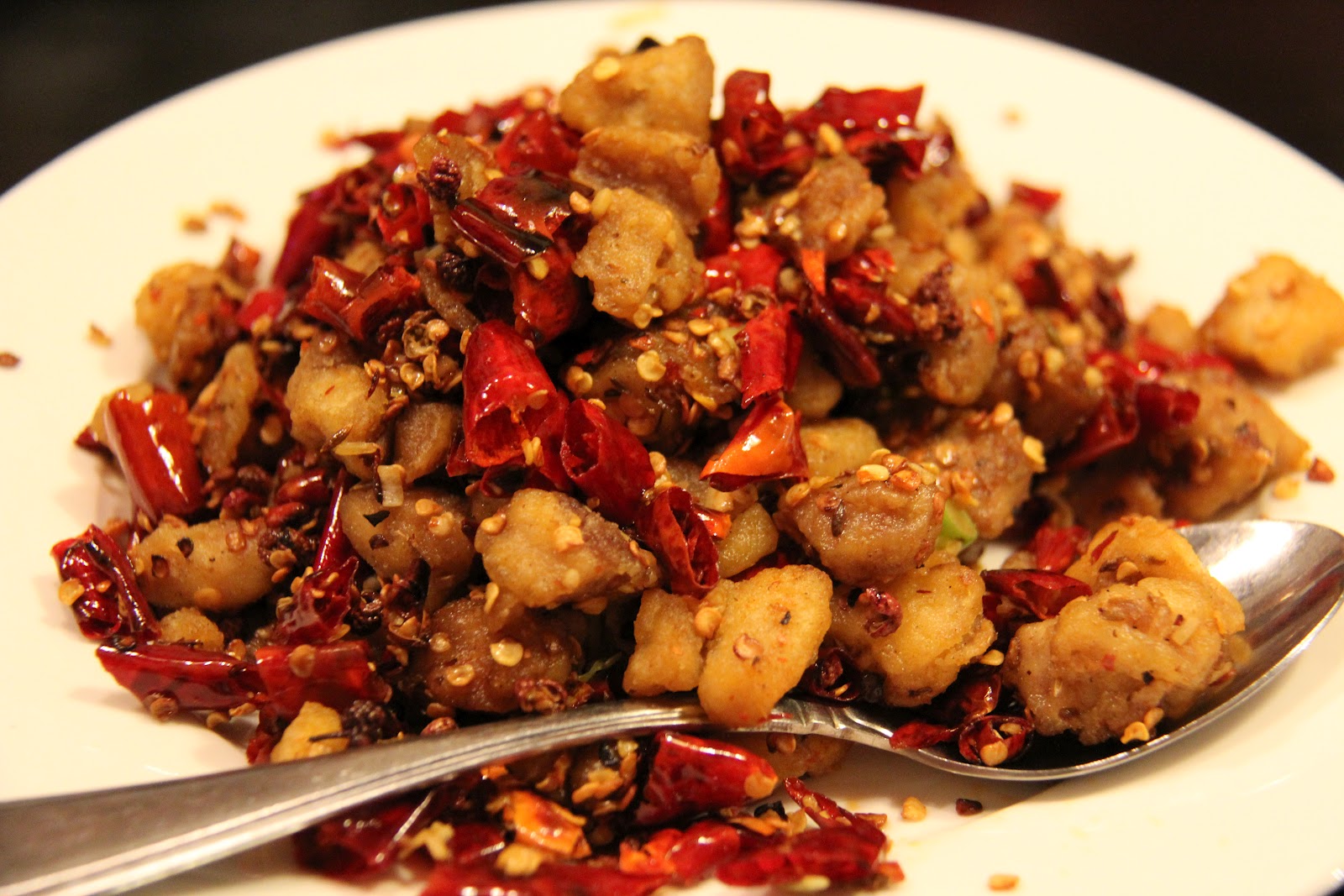 | Spicy chicken. They used two different types of pepper. One of them had slight citrus taste to it. |