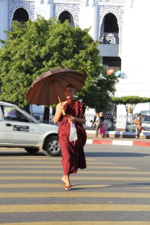 A Monk crossing the street.