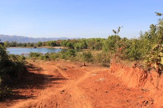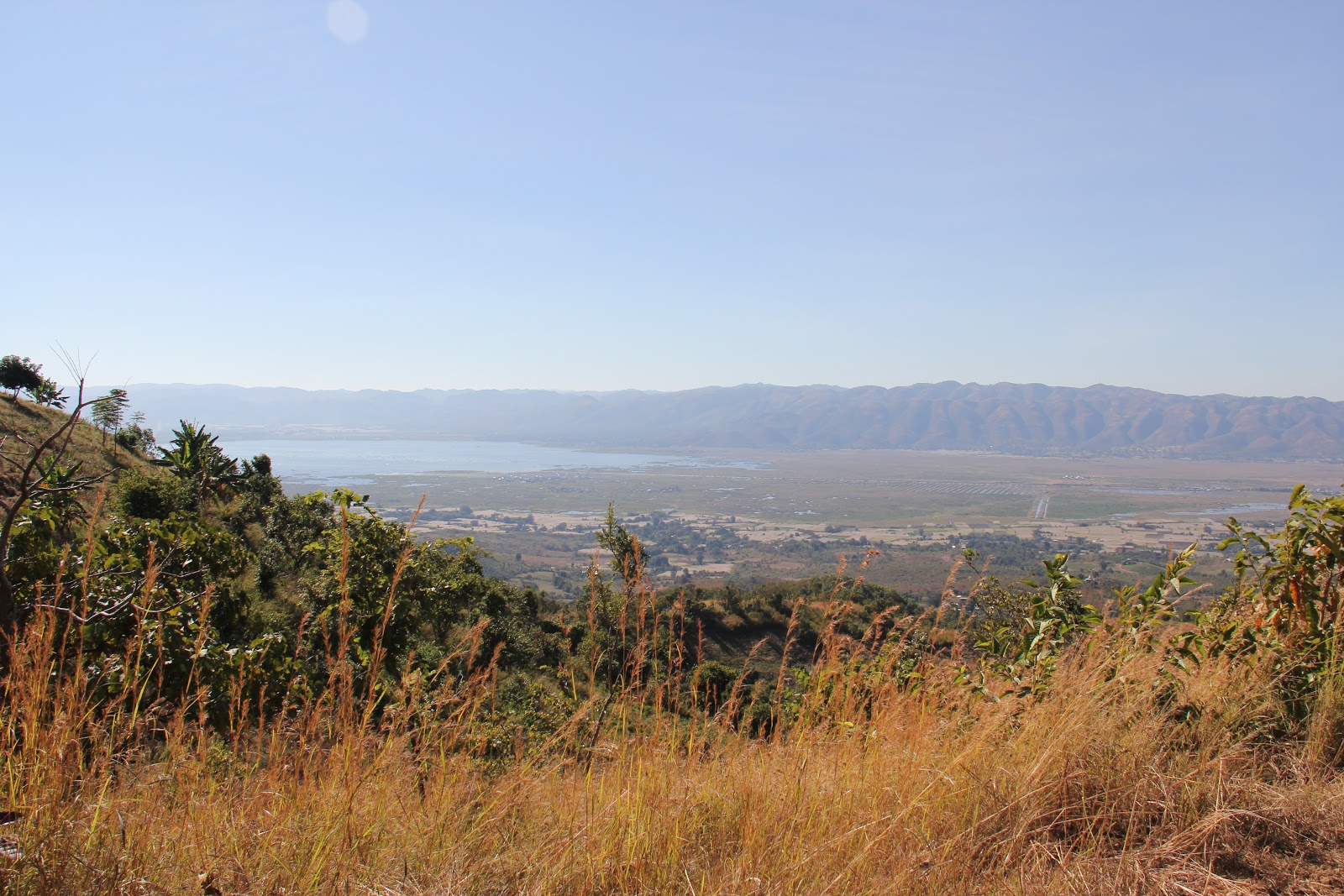 | Hiking down from lunch. Got a good view of Inle Lake. |