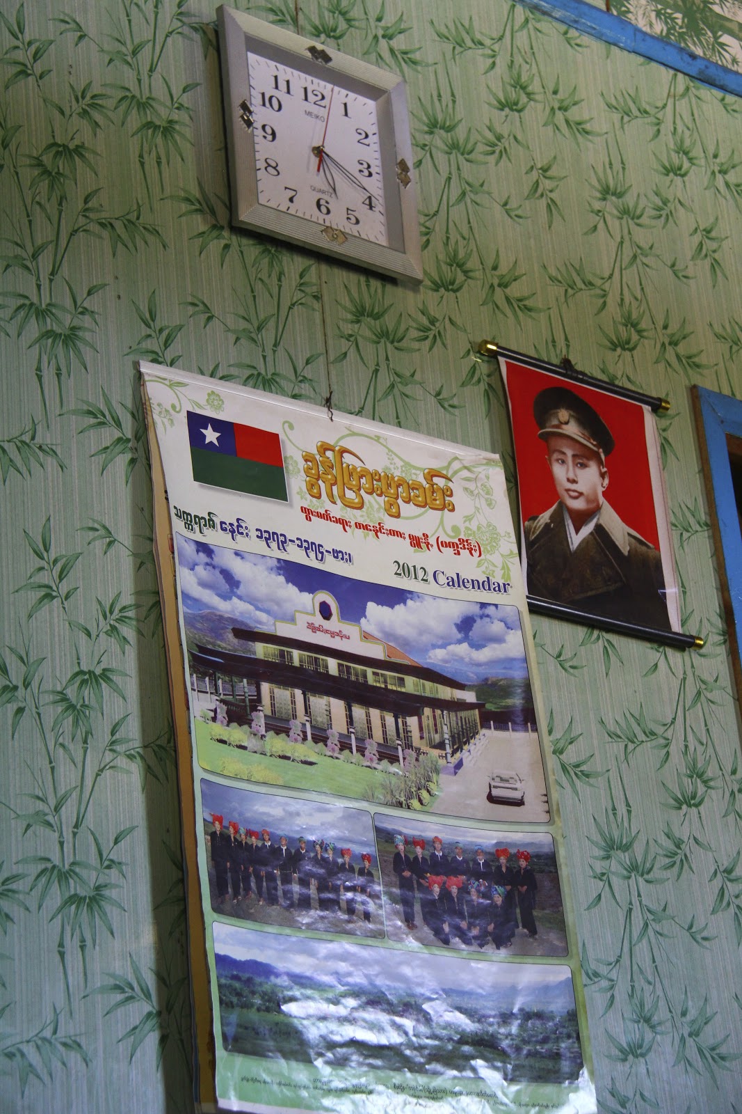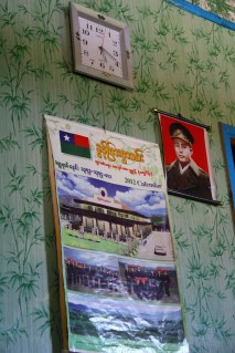 | The hangings on the wall. The man to the right is Aung San Suu Kyi, who was a hero in his own right apparently. |