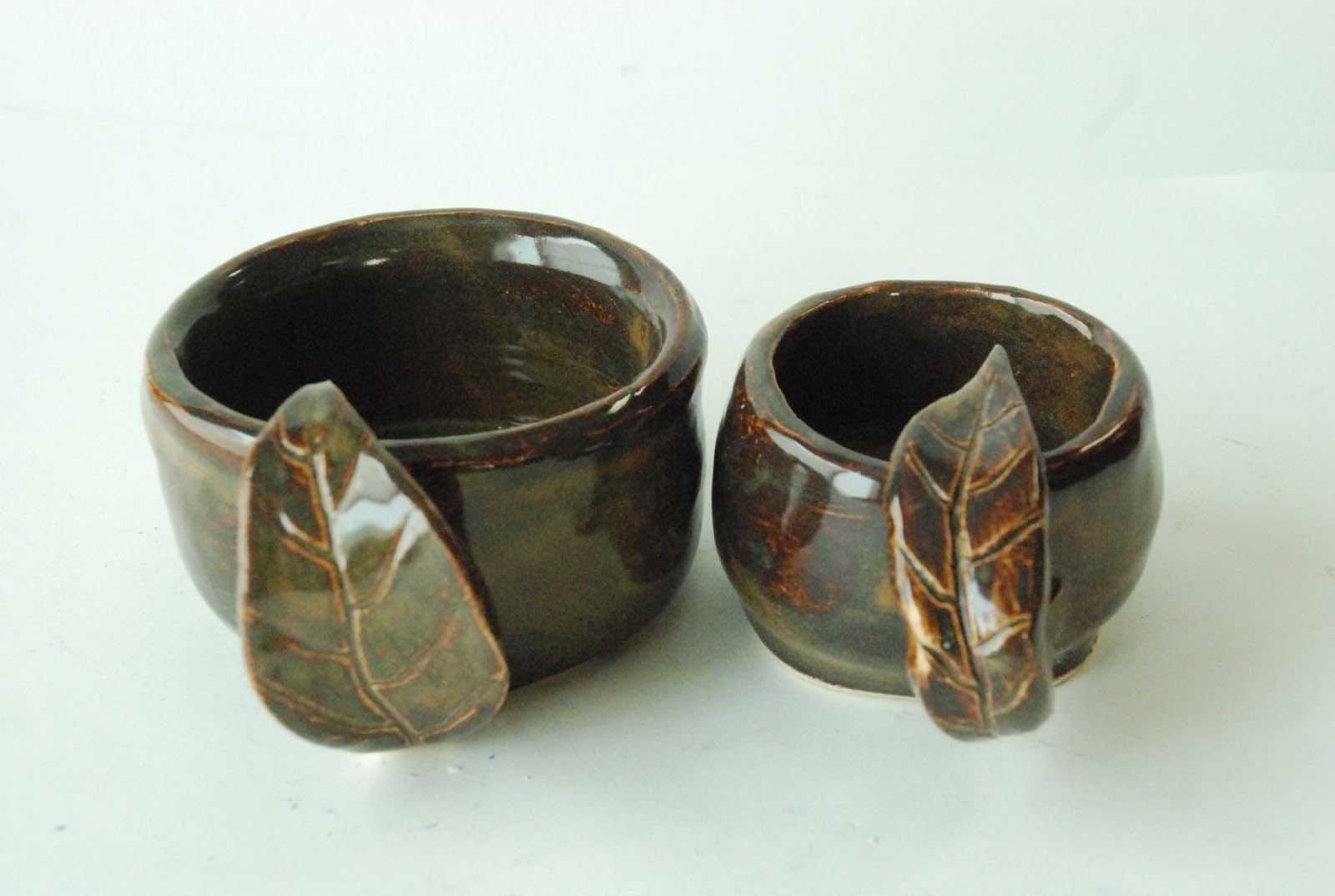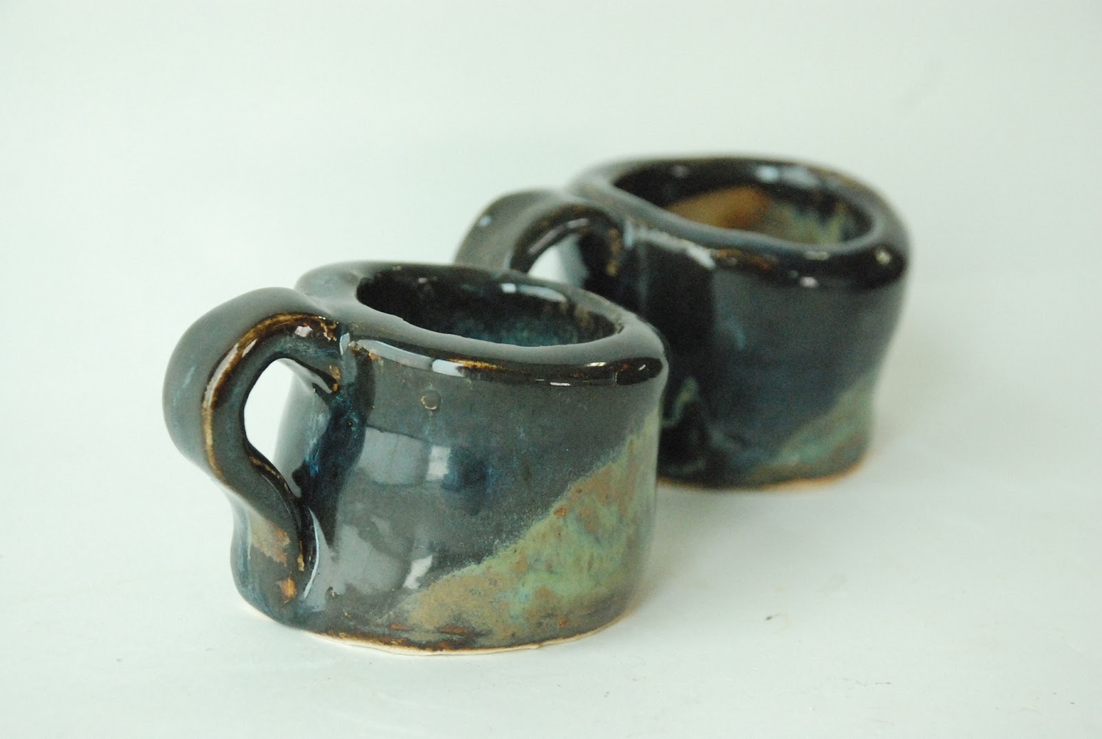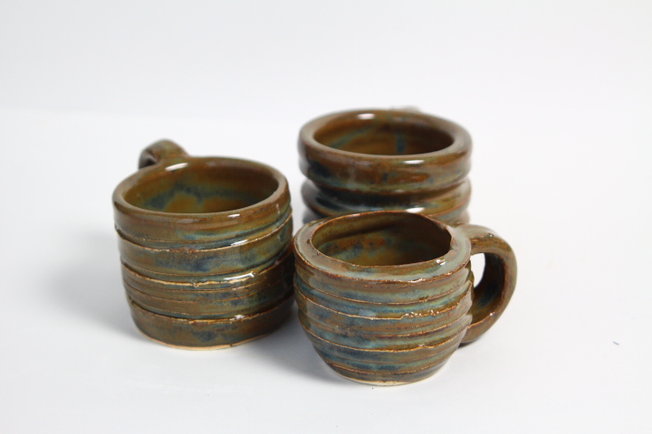 My Ceramics I students recently completed a wheel throwing assignment. Each student worked to complete two mugs with trimmed feet and added handles. They used some sort of design aspect to unify the mugs and glazed them with high-fire dipping glazes (my favorite new supply this year!). Here are a few that have been photographed thus far: