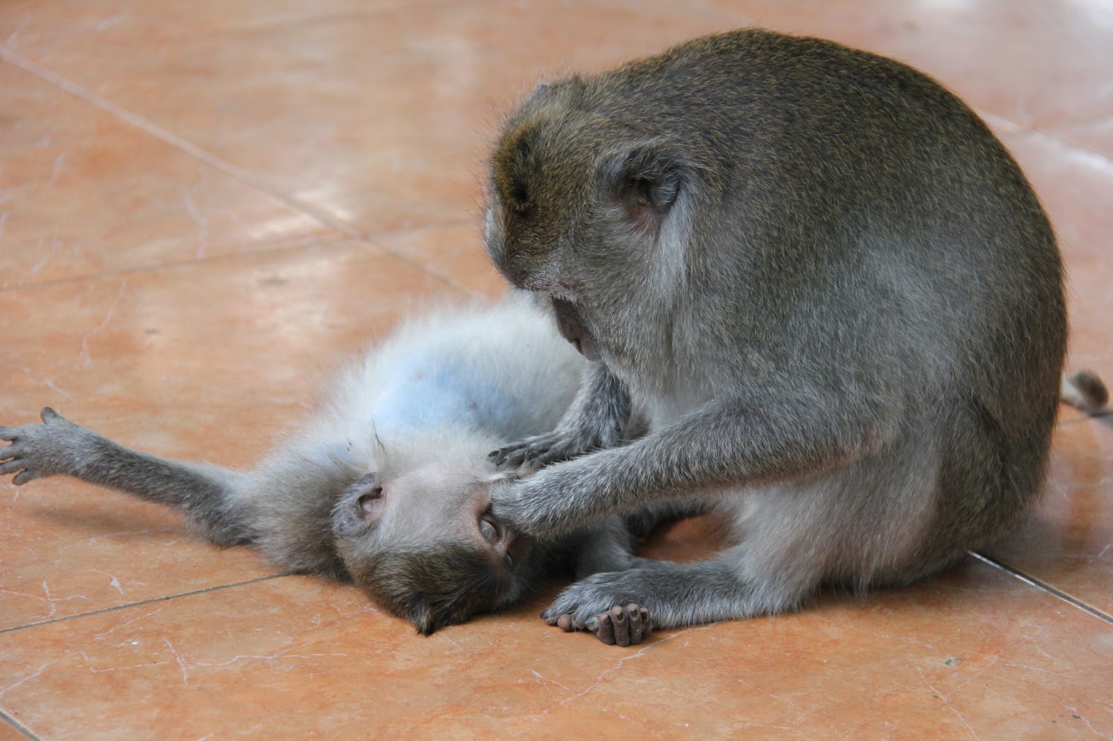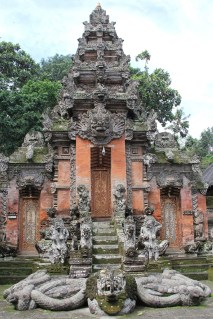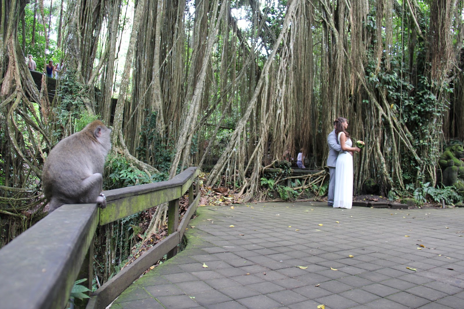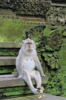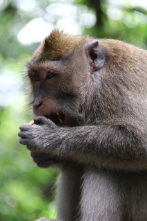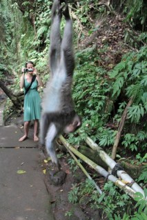 In addition to meandering around Ubud we also visited the Monkey Forest. The Monkey forest is more or a less a park were they keep monkeys in a state of semi wild living. They wander around freely, yet they are fed by the keepers and are used to humans feeding them. This is not to say that they are the friendliest or domesticated. Caitlin had one that saddled up to her and freaked her out a little. As you’ll see in the pictures they have some serious teeth. It made for a leisurely walk through and provided a lot of monkey pictures. Not quite to the level of Caitlin’s flamingo picture extravaganza but definitely prepping for Safari picture taking.