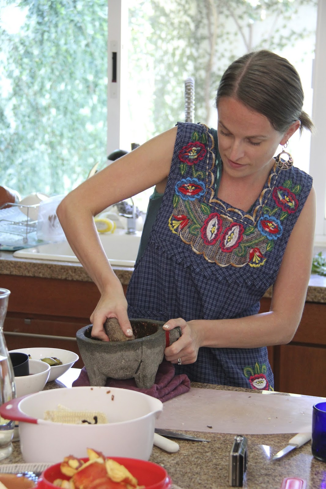 | Caitlin making mole. We didn’t grind it by hand as we wanted to eat sometime today. |