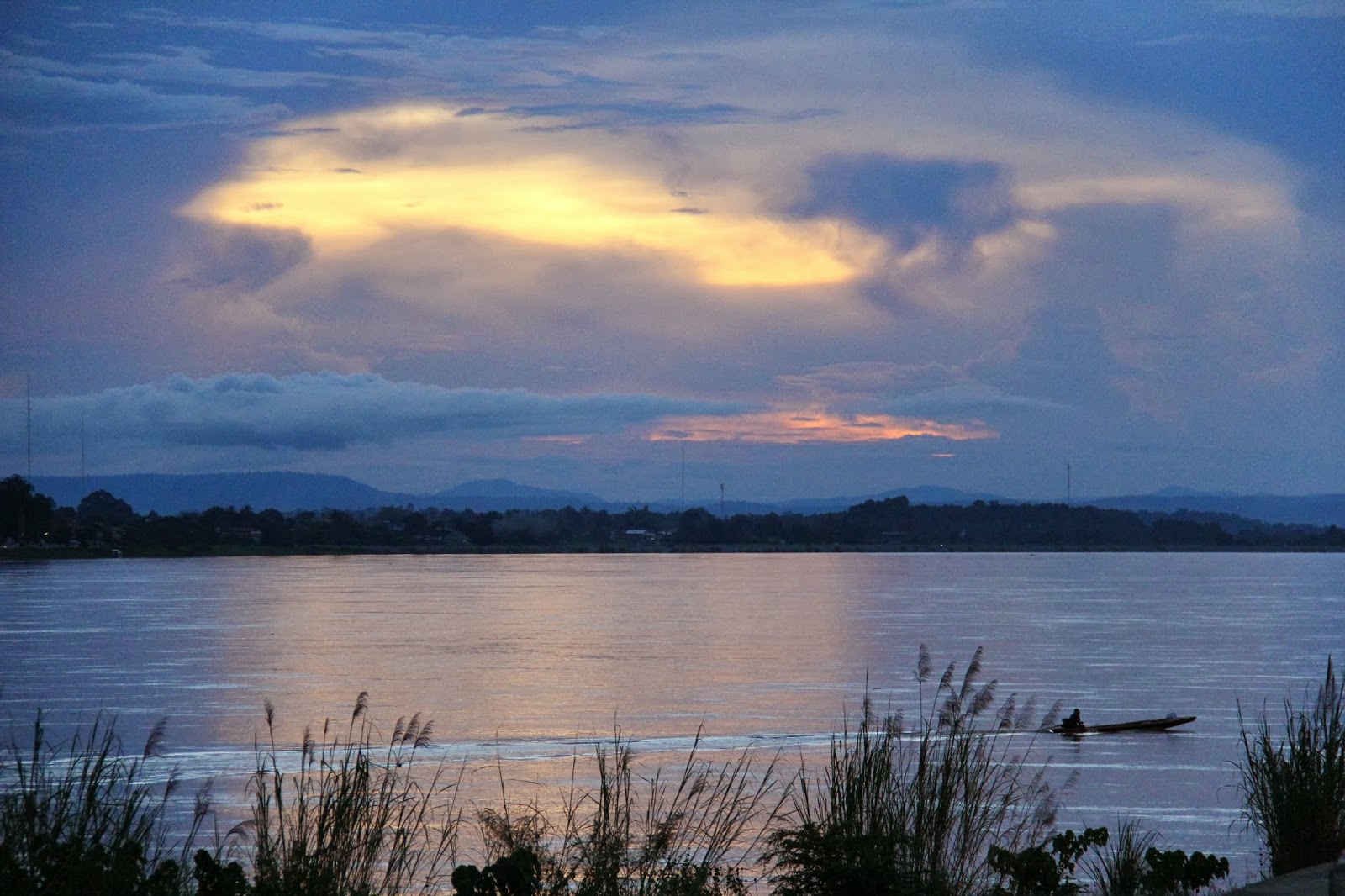| Looking out at the Mekong right after sunset. The clouds were really cool. |