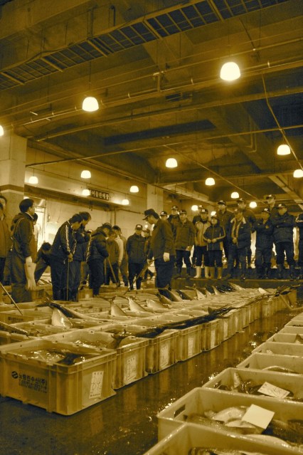 The prep for the auction consisted of sorting the fish by type, quality, size and labeling them with their characteristics. Then the auctioneer would roll up in a little cart with a screen and a microphone and things would start moving quickly. The auction would last about 15 minutes and the buyers would be at one end with numbered hats and each have their signal and a little notebook to write down their purchases. At the end of the auction there be a break and all the fish would be taken then they would start all over with a different type of fish. The whole process was overwhelming and Mark and I stood in awe as we watched it unfold, we were the only tourists foreign or domestic.
