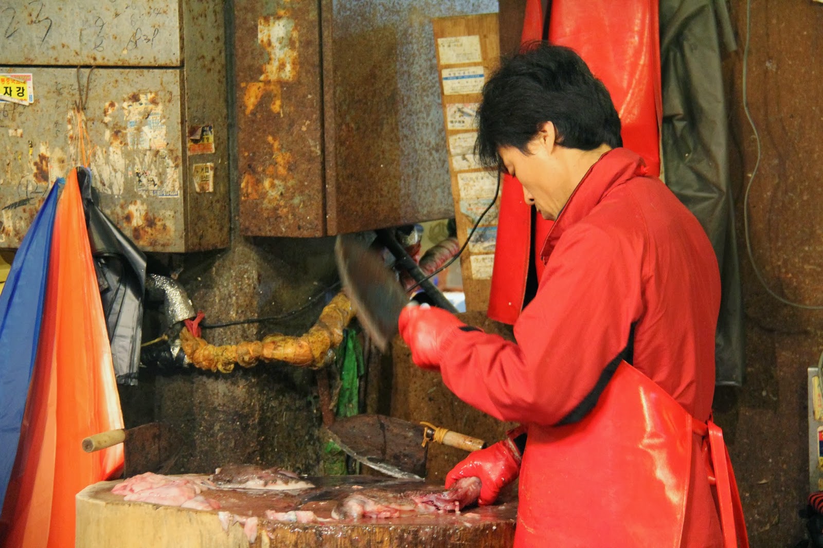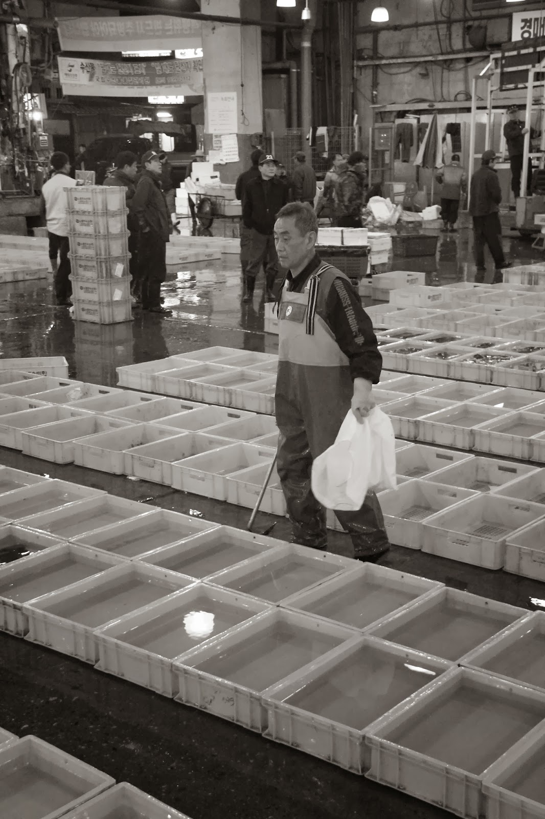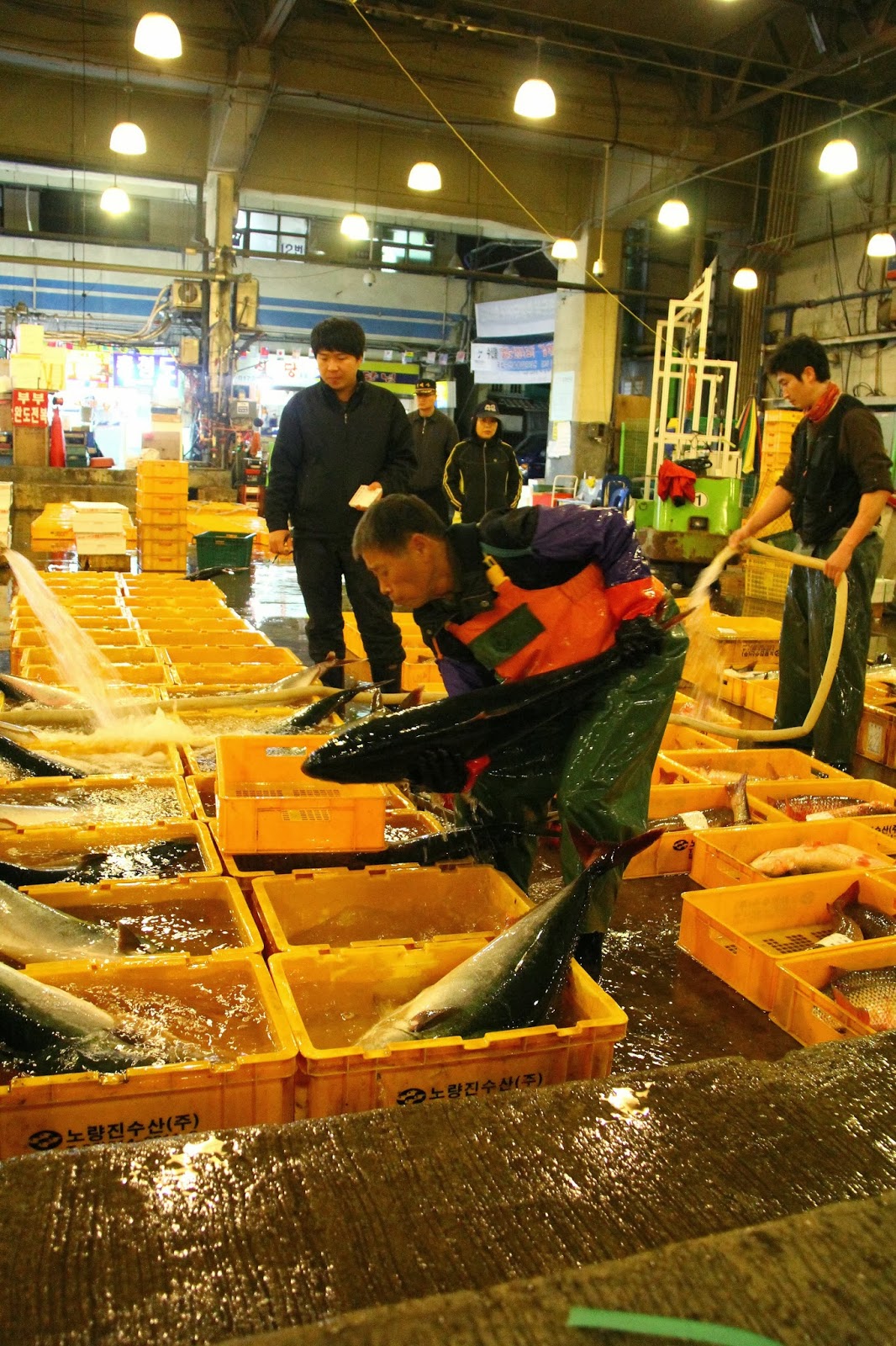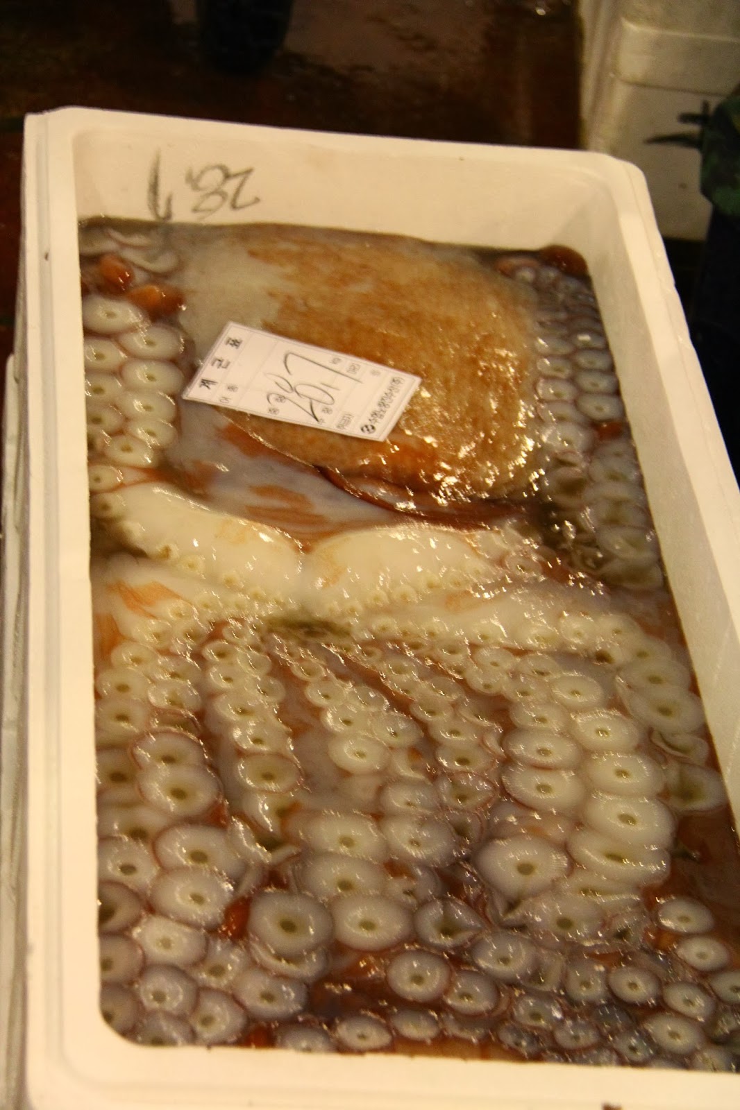 This morning I got up at 1:20am to go to the Noryangjin fish market. It had been on my list of things to do for sometime but I hadn’t gotten around to going nor had the motivation as 1:20am on a Saturday doesn’t sound appealing. Thankfully Mark was also keen on going and was up for a very early start to the day to go check it out, giving me the push to wake up. The reason why we wanted to go early was to catch the fish auction that starts at 3am. Noryangjin is the biggest seafood market in Seoul and serves as the selling point for other markets and restaurants.