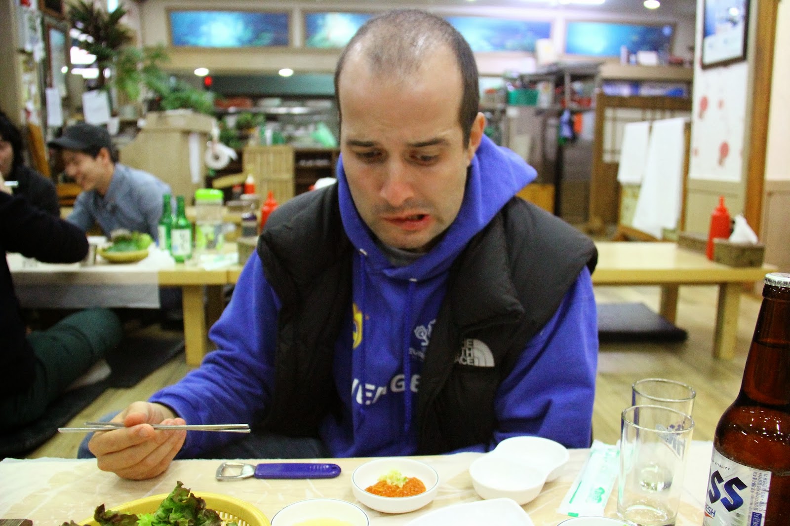 After watching for a while we decided to head down to one of the smaller vendors and buy something to eat for breakfast. We ended up eating flounder served like sashimi and fresh octopus that was still moving. The octopus would stick to the sides of your mouth until you chewed it enough that it stopped. This was one of the cuisines that I’ve wanted to try for some time. I had expected that it wouldn’t be very tasty but was pleasantly surprised. The preparation consists of salting then dipping it in sesame seed oil making it pretty tasty.