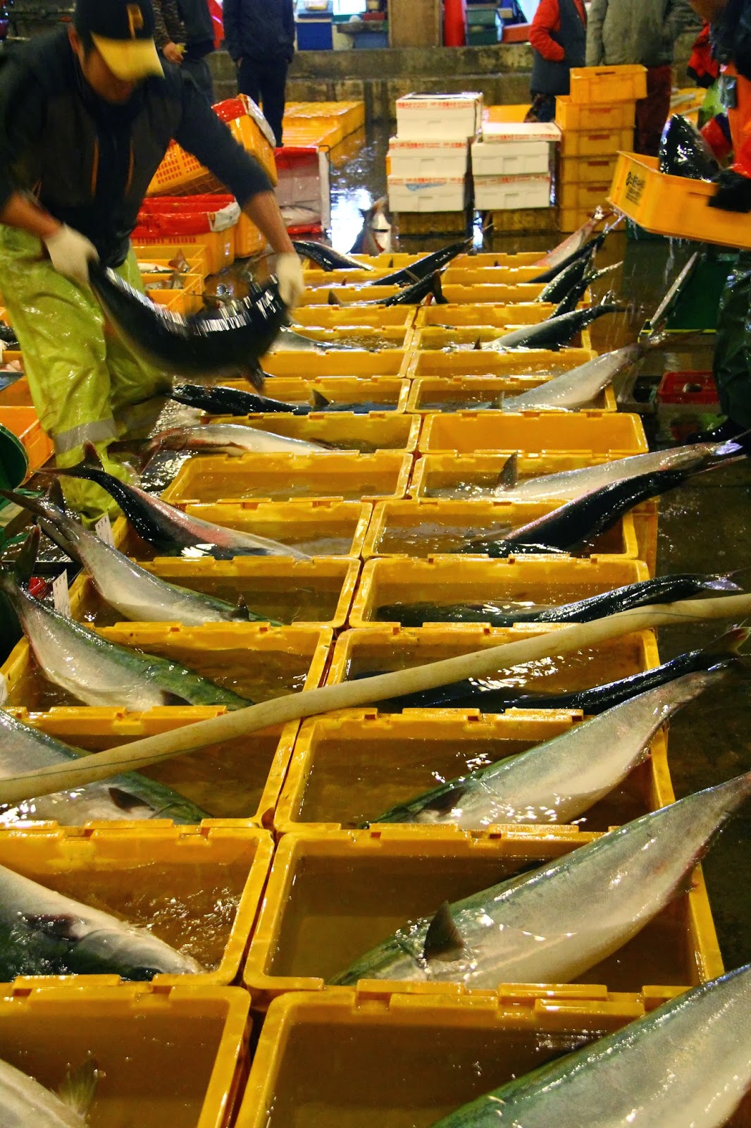 The early start was not easy and when we first got there I thought we had missed it as there wasn’t as much commotion as I had assumed there would be. Luckily we were just on the early side of things and after wandering through the market we came to the end of the market where they were setting up all the fish to auction off.
