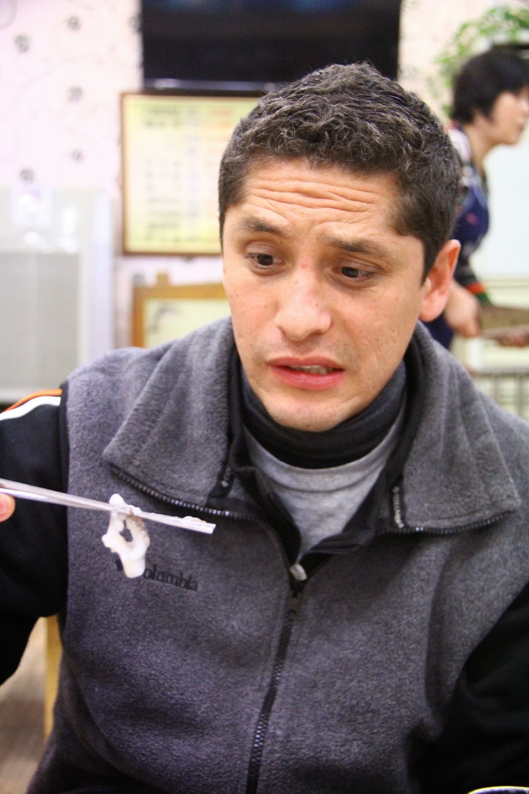 | Marks reaction to the octopus clinging to his chopsticks. |