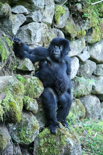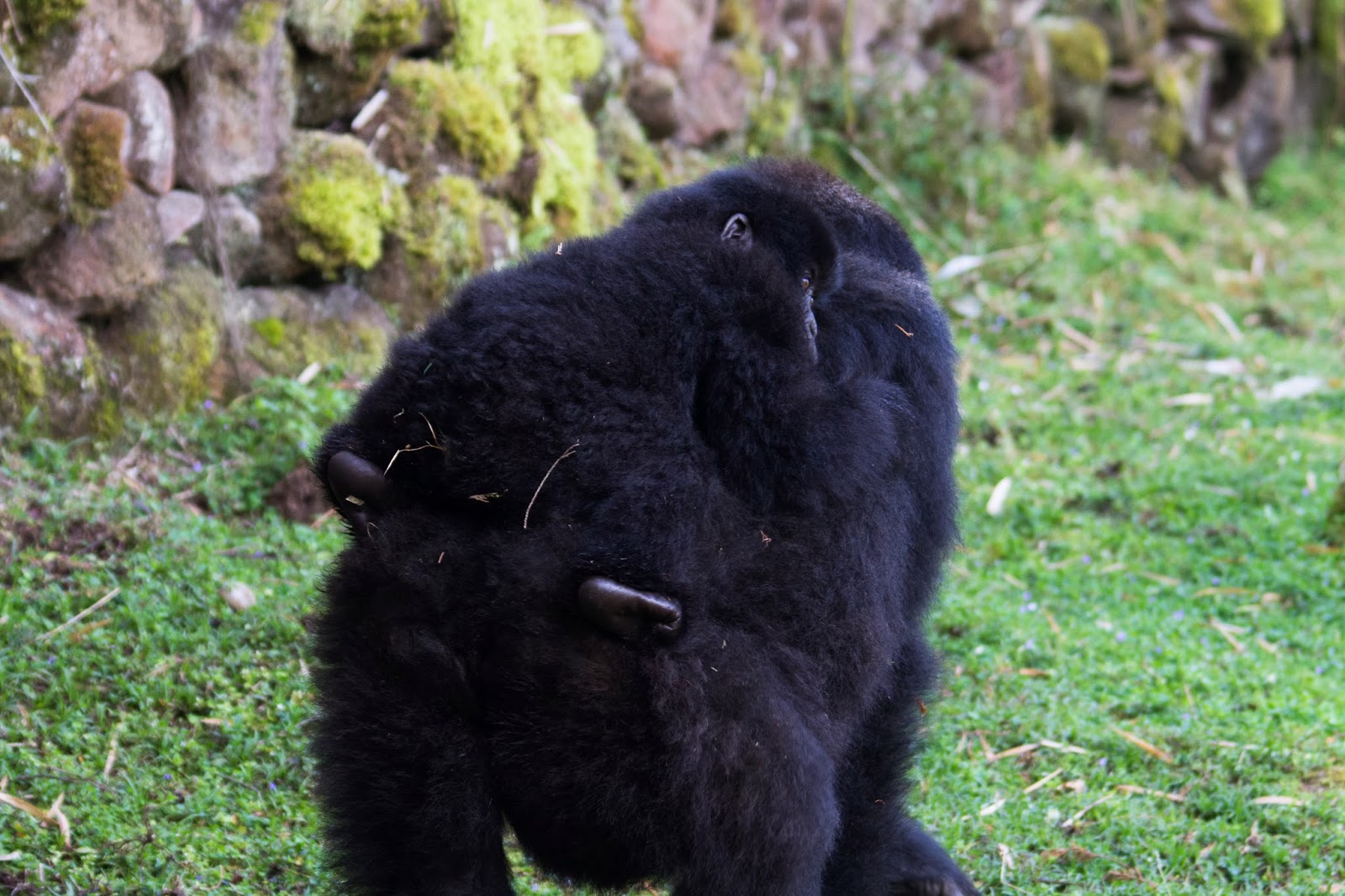 We got up and headed to the ranger station to get the details of the day. The National park has a system in place that limits the amount of contact the gorillas have with people to avoid altering their natural habitat too much. They only allow 10 families to be visited, and each family can only be visited once a day for an hour by a group of no more than 8 people. Thus we were partnered up with a family from New York. As there are only 10 families that can be visited each has a name and the group we visited the first day was the Hirwa group. We were told that Hirwa means lucky and was named after the lead silverback male. The name was given because he left his original group after fighting with the lead male and losing he then crossed two mountains in the process picking up a couple of females and kicking out another silverback from his territory to make his own group. The guide explained to us that this is uncommon and as such they named him lucky. After giving us the run down of the group members and ages we were told we would start hiking. The hiking was down by following our guide who was in radio contact with the trackers and rangers who had already gone ahead to search out the group. By doing so we were able to have a more direct route to the gorillas. The name lucky seemed fitting as we walked about 30min. when we came across them. I had my doubts as to how legit this was at first as it seemed a little too easy, I wondered if they had forced them down or fed them. These doubts were later put to rest as we met another couple staying at our hotel who had to hike for 6 1/2 hours before they saw their gorillas. So we indeed, just got lucky. I’ll explain the rest via pictures.