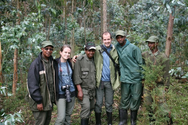 | Caitlin posing with the Gorillas. We were able to get extremely close, then had to get out of the way whenever they changed directions. |