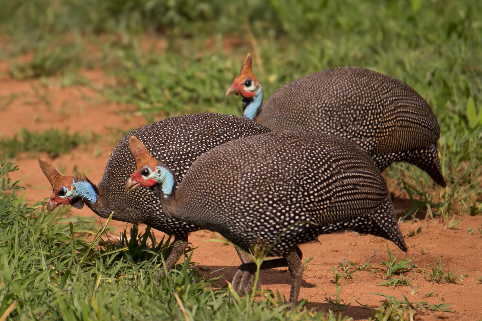 | Spotted Guinea foul. Their heads looked like something out of prehistoric times. |