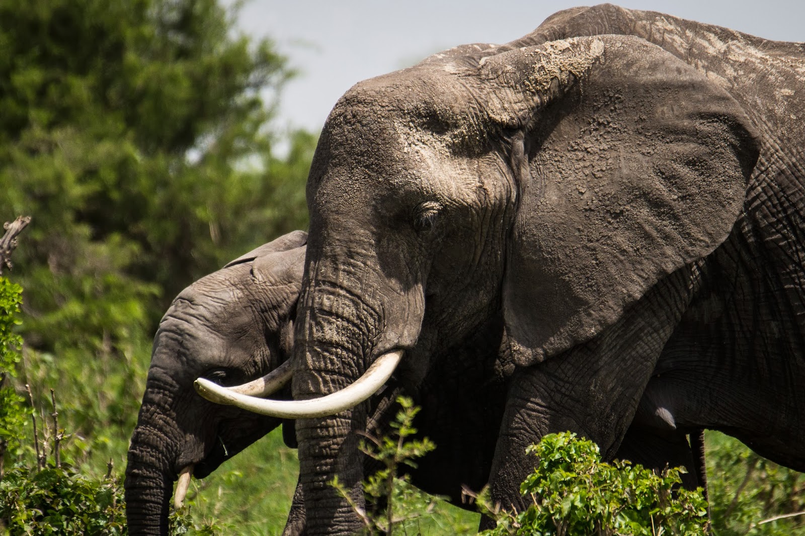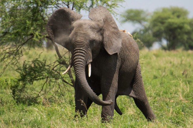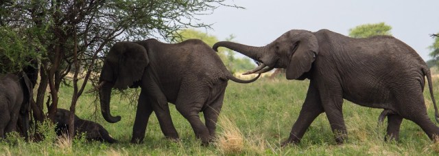 | We saw a bunch of elephants in the park, more on the second day. But this guy was chasing the ladies, they didn’t want any and kept moving from tree to tree. Its not easy to keep up with 5 legs. |