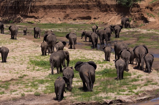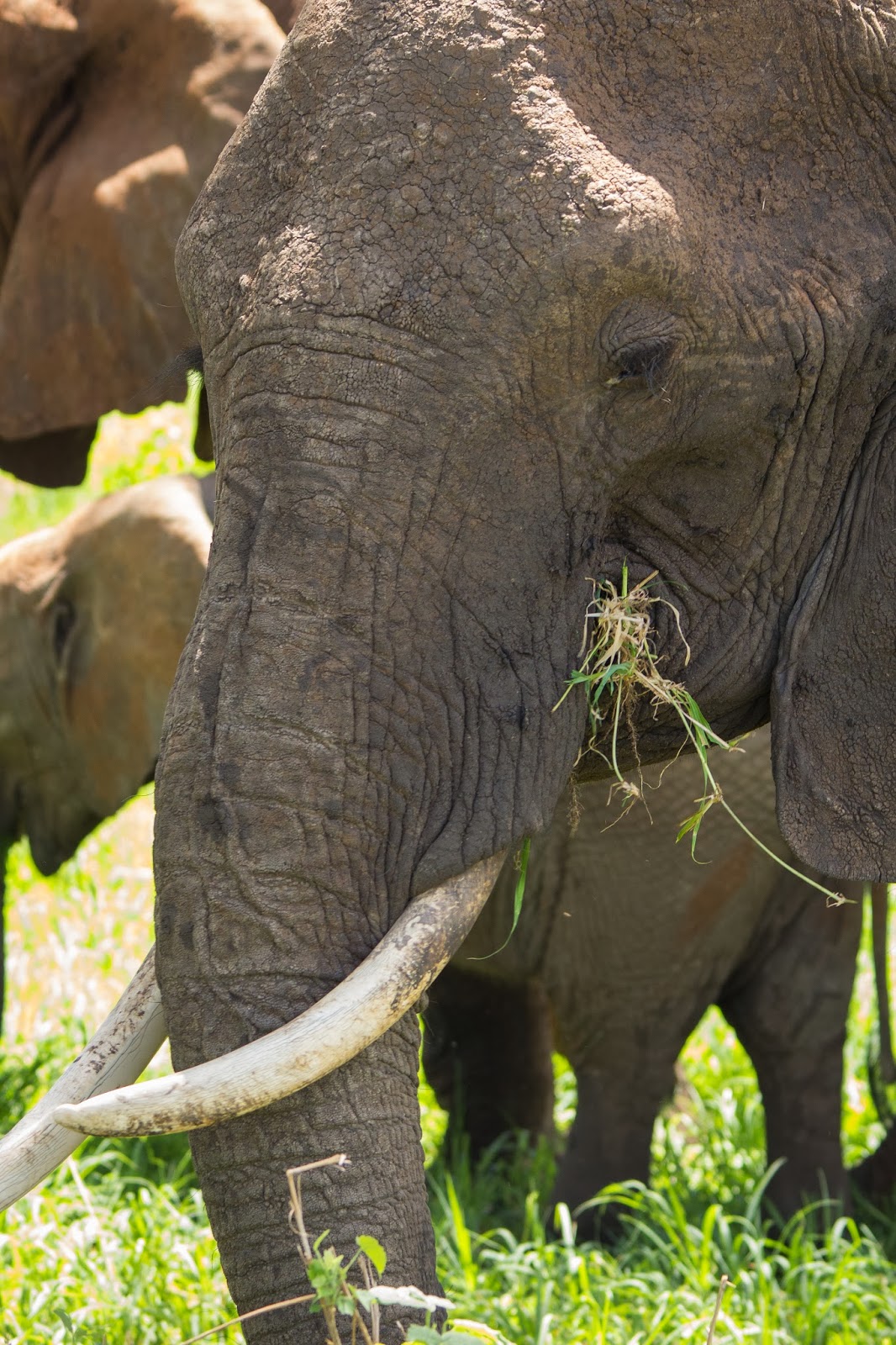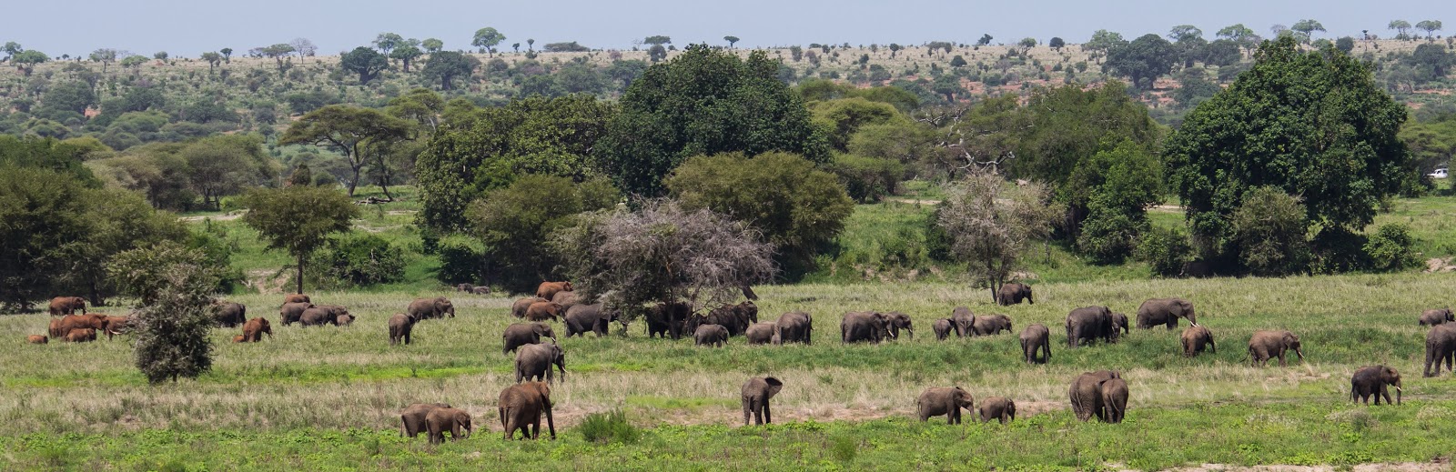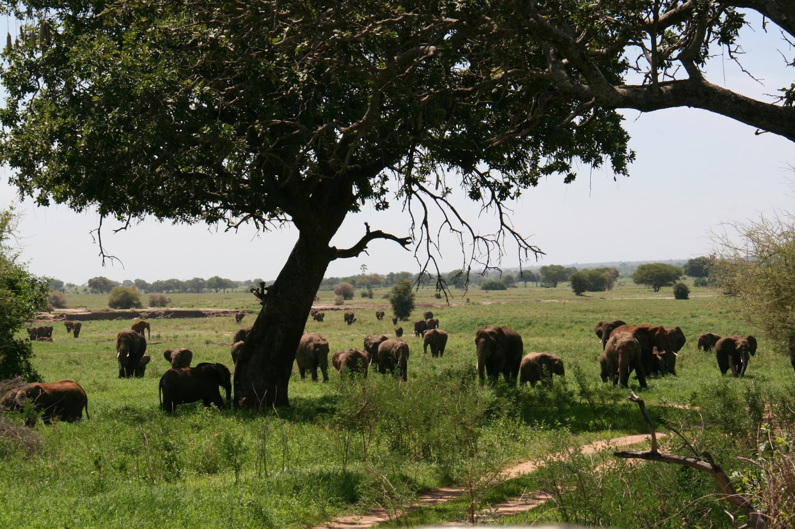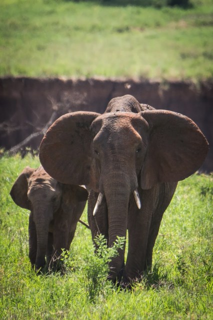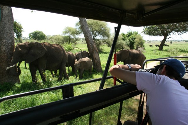 Tarangire national park is known for its elephants and while we had seen some the first day we were in for a huge surprise the second day. Caitlin was hoping to see the big cats and as we set out in the morning we got to see a couple of male lions, we thought that was going to be the highlight but the elephants stole the show on the second day. We watched hundreds of them walk across the landscape and get within feet of our jeep. Watching them lumber across, I couldn’t help but think of dinosaurs. They are so large and slowly trod along eating and chewing the whole way. The massive size was so much fun to watch, we just sat in the jeep watching them graze.