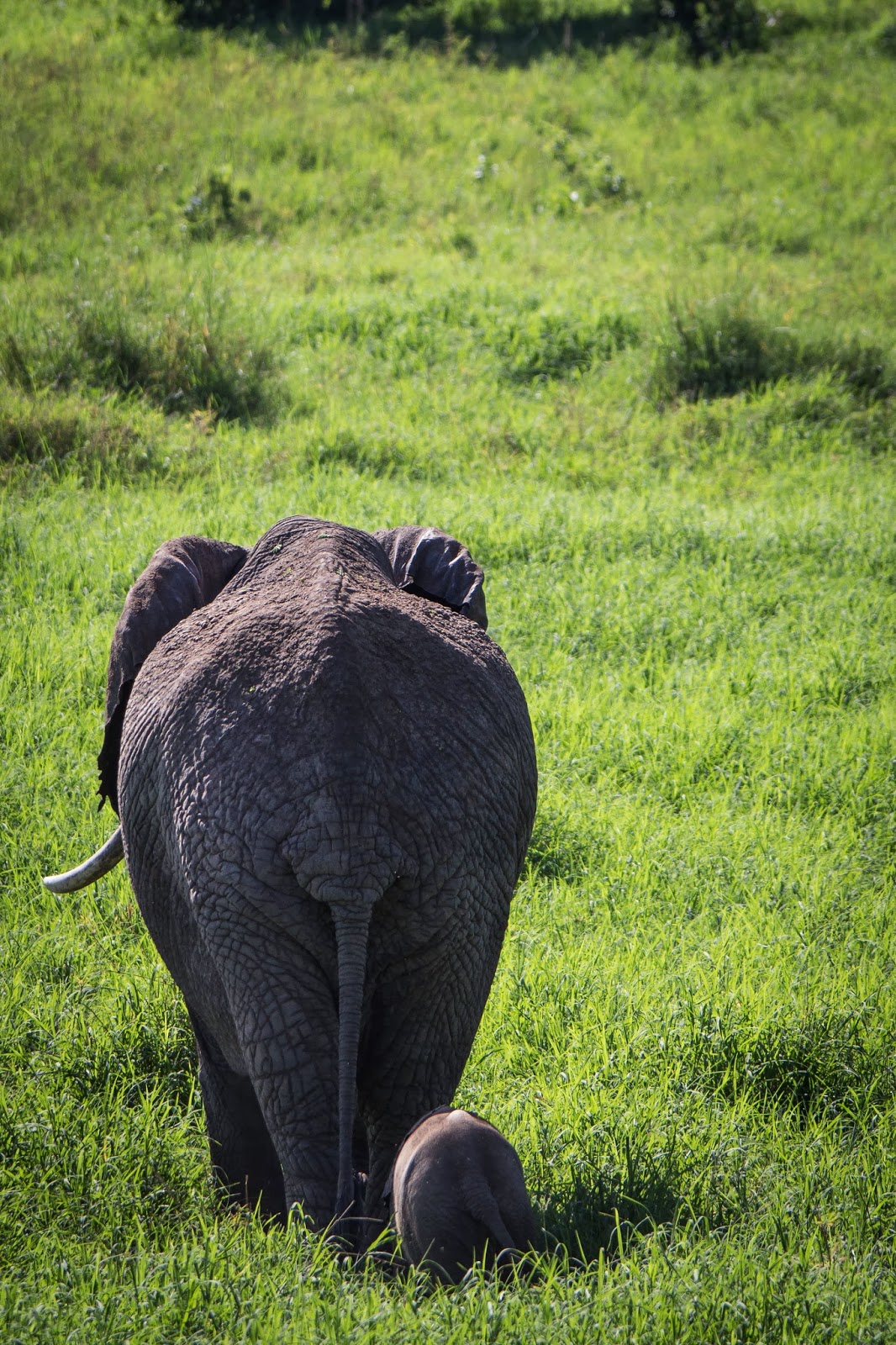 | We stopped and watched them walk around us, the view out the back of the jeep. |