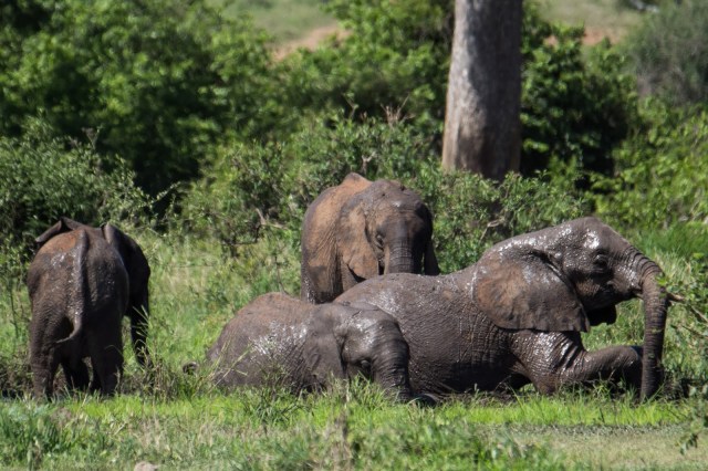 | Elephants in the mud hole. We watched them bathe as we had lunch. |