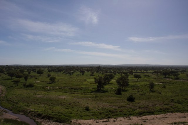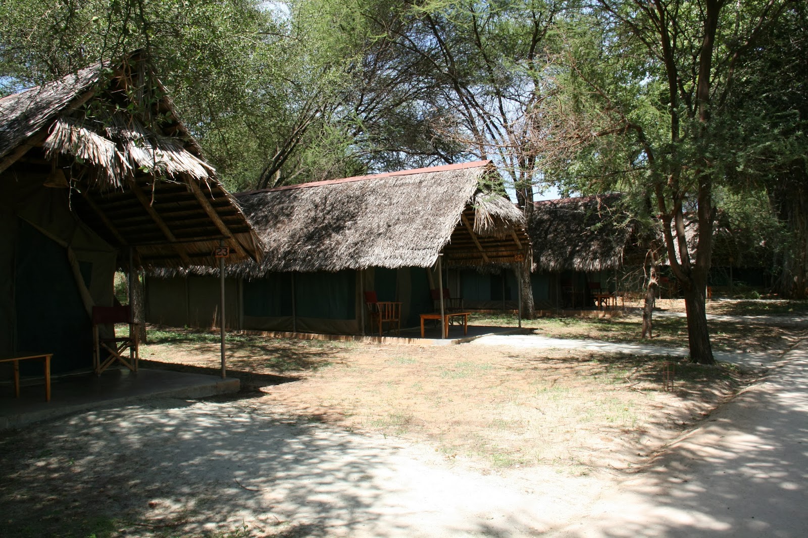 | A view of our permanent tent from the lodge we stayed at in Tarangire. |