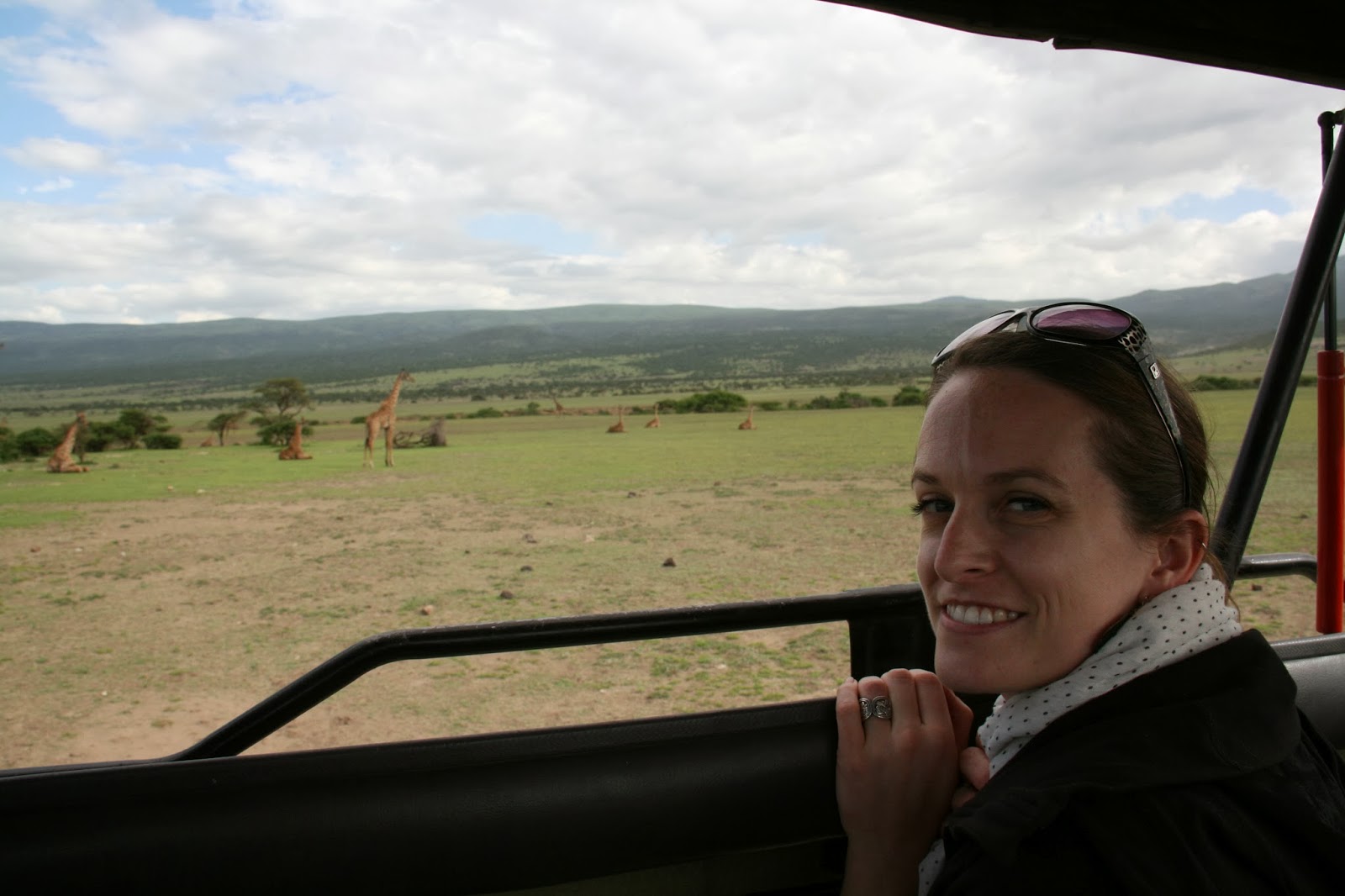 | In case you forgot what we looked like, oh and giraffes in the background. |