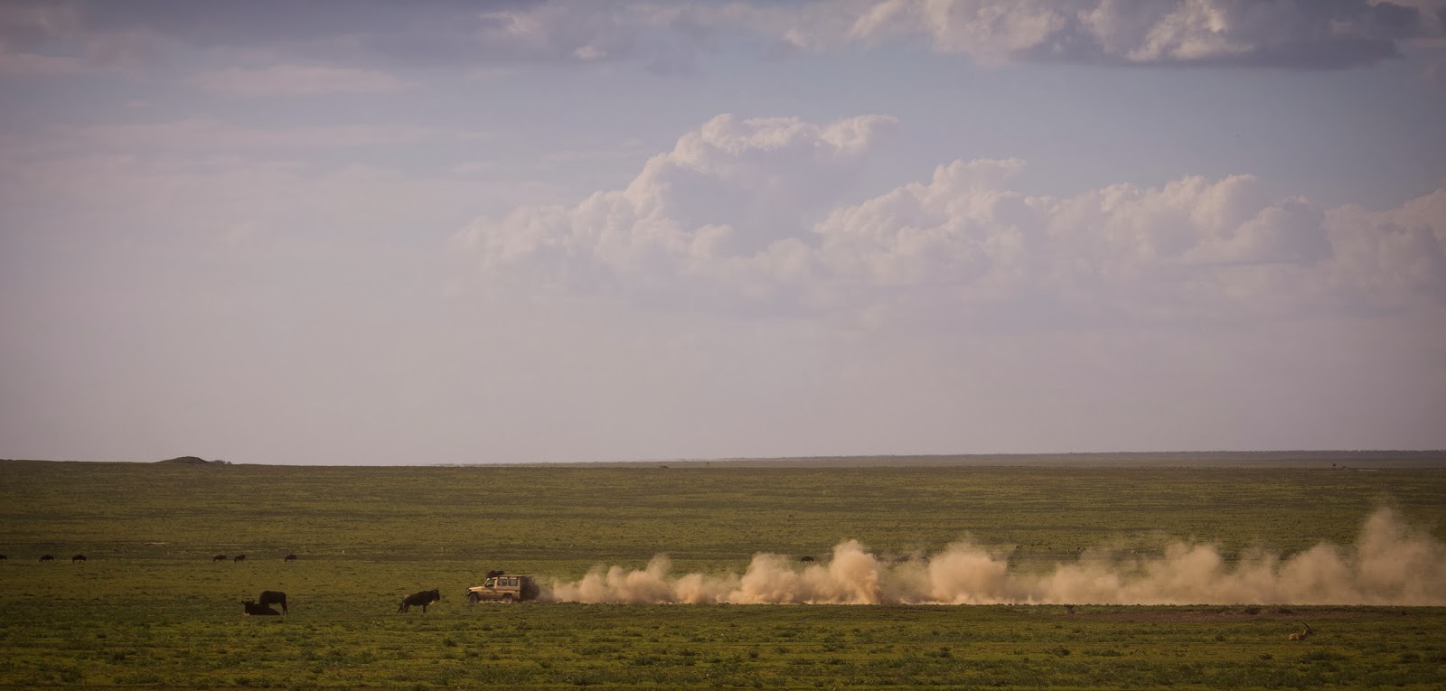 | Another jeep cruising across the Serengeti. |