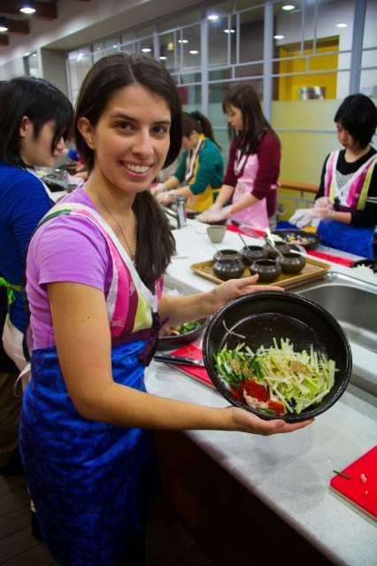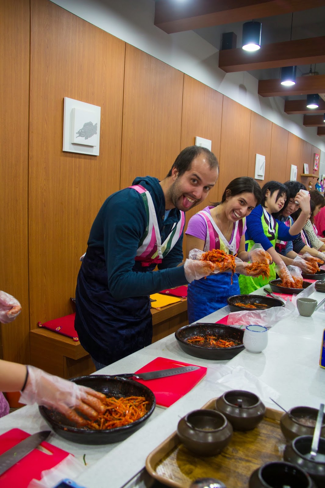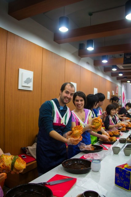 The first thing we did the second day was get an early jump on things and head out to make some Kimchi. Our coworker recommended a place that would teach you how to make it and let you dress up for photos. So when we got there we dressed up in traditional Hanbok and got our pictures taken. After that we dug into making kimchi. It was not nearly as hard as I thought it would be, I still don’t know if it turned out but it at least looked like Kimchi to me.
