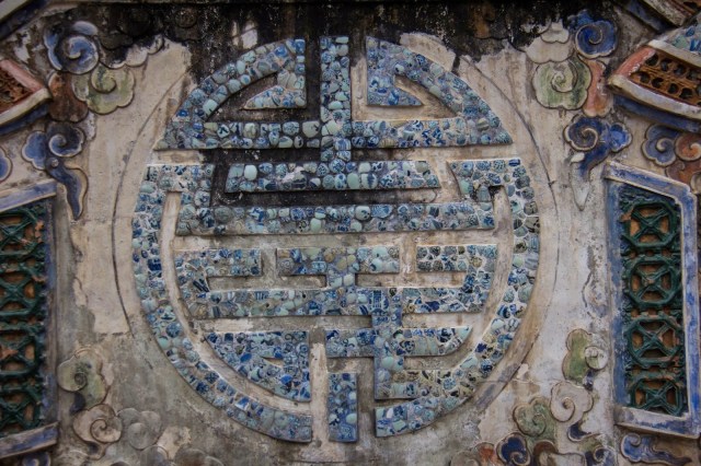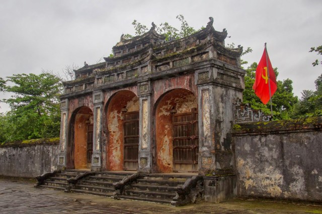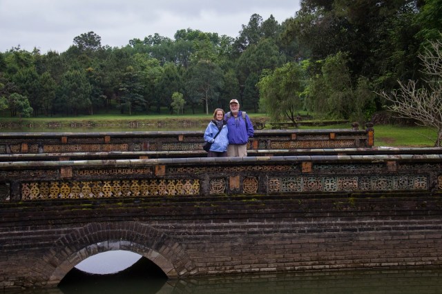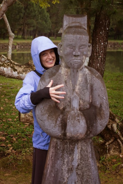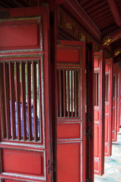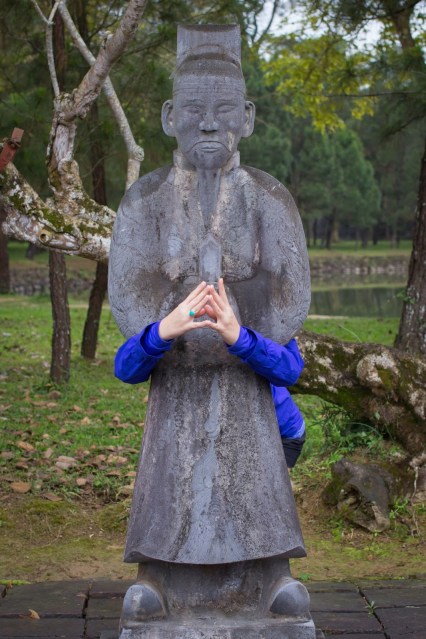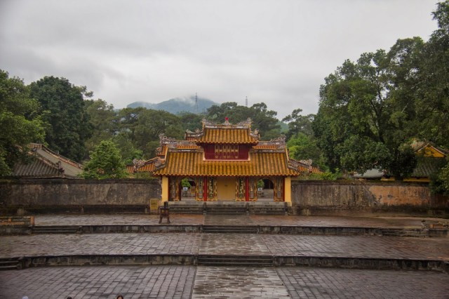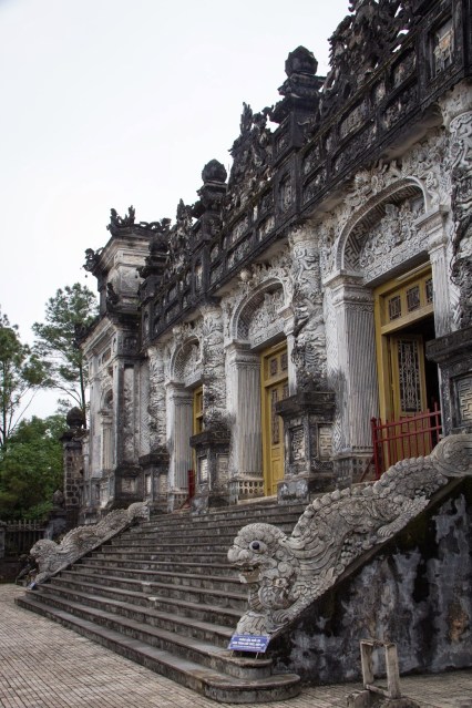 The second day in Hue we had cloudy rainy weather once again but it looked like it wasn’t going to pour on us so we piled into a car and went sight seeing at the tombs of former emperors. The tombs ranged in style due to French influence. The first tomb we visited was the tomb of Minh Mang which was the oldest and from around the 1840s, the second tomb we visited was that of Khai Dinh which was from 1925 and the newest we would visit. It had an interesting mix of Vietnamese and French influence. This one may have been the most interesting simply because there are pictures of the Emperor and of his funeral procession. The last one we visited was more of a combination tomb and temple, the emperor Tu Duc built it and used the gardens before being buried there.