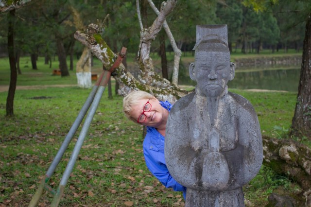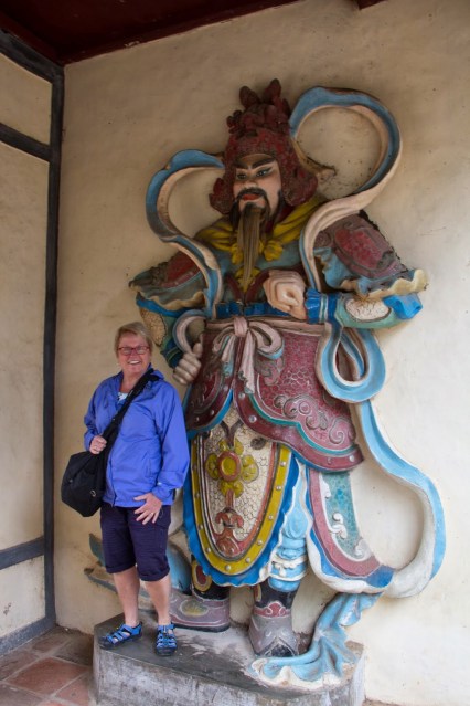 | Gail posing with one of the warrior statues. Interestingly these had hair incorporated into the statue. |