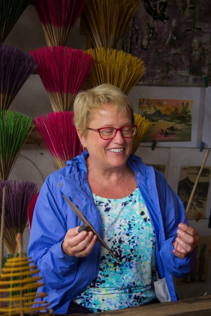 | We stopped at a roadside stand and learned how to make incense. Gail’s incense was not as thin as the other ones. |
