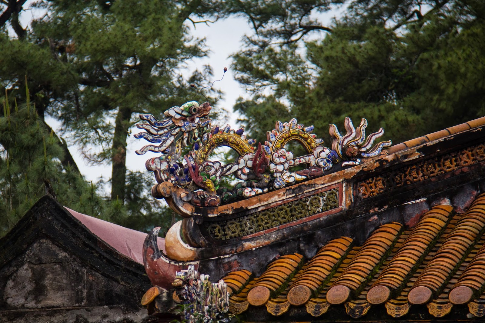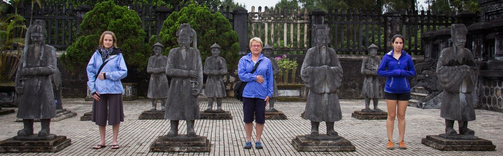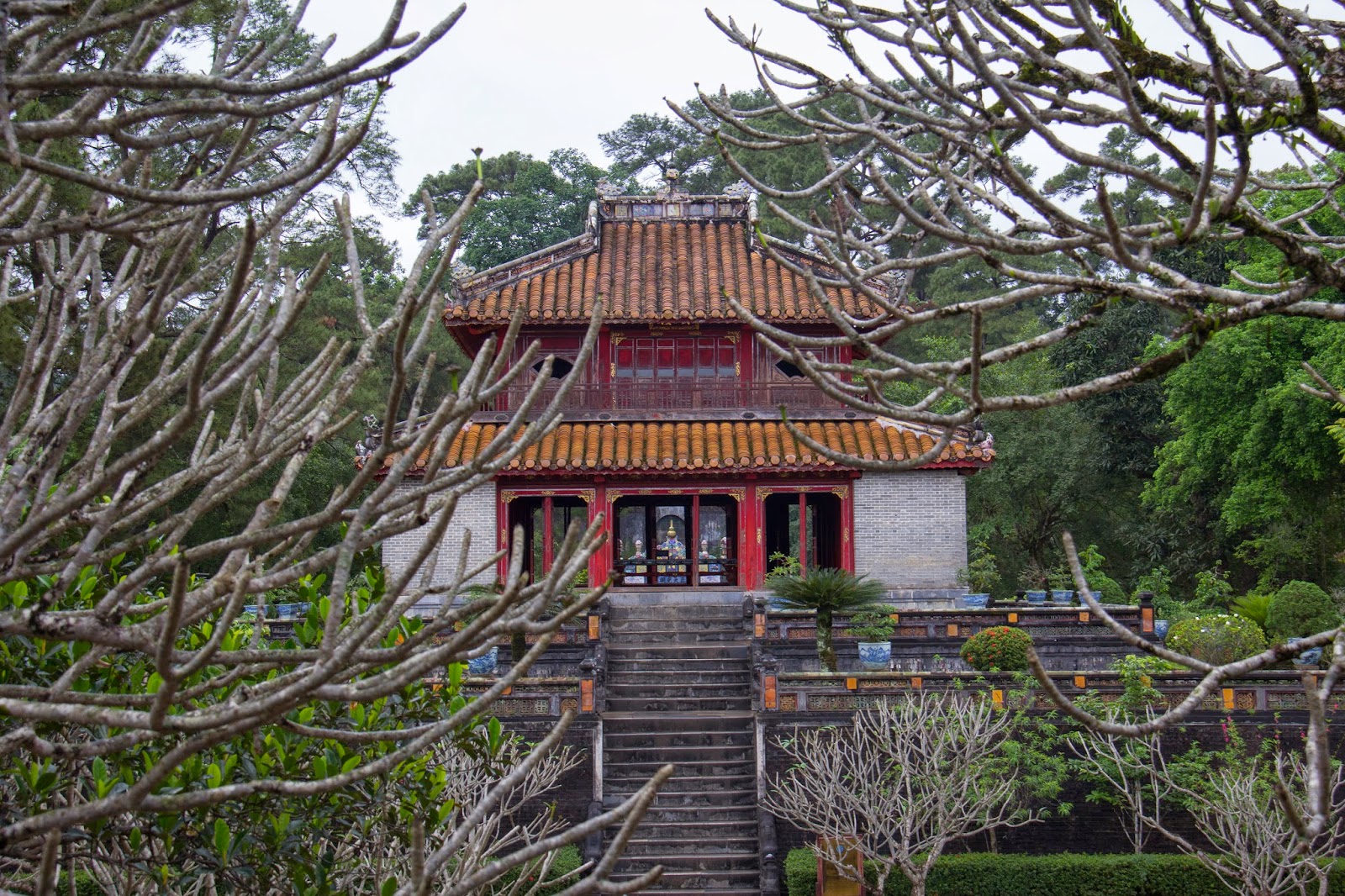 The second day in Hue we had cloudy rainy weather once again but it looked like it wasn’t going to pour on us so we piled into a car and went sight seeing at the tombs of former emperors. The tombs ranged in style due to French influence. The first tomb we visited was the tomb of Minh Mang which was the oldest and from around the 1840s, the second tomb we visited was that of Khai Dinh which was from 1925 and the newest we would visit. It had an interesting mix of Vietnamese and French influence. This one may have been the most interesting simply because there are pictures of the Emperor and of his funeral procession. The last one we visited was more of a combination tomb and temple, the emperor Tu Duc built it and used the gardens before being buried there.