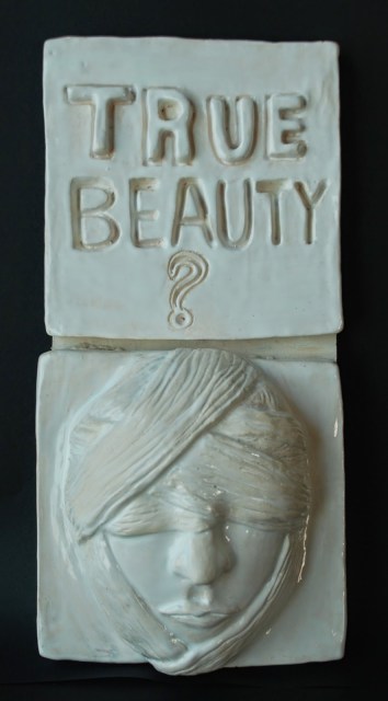 My Ceramics II students start each year off by creating a series of tiles on a topic of their choice (how far behind in blogging am I that it’s June and I’m telling you about the first project of the year from last September?!…whoops!). I ask them to choose between an architectural theme or a socio-political theme and to include significant additive and subtractive relief. The rest is up to them! I find that an open-ended project like this is a great way to start off the year for my II’s…they get a sense of freedom, have a chance to express themselves in a creative way, and basically set themselves up for what the rest of the year will be like in terms of planning, research and creativity. A few of this year’s pieces: