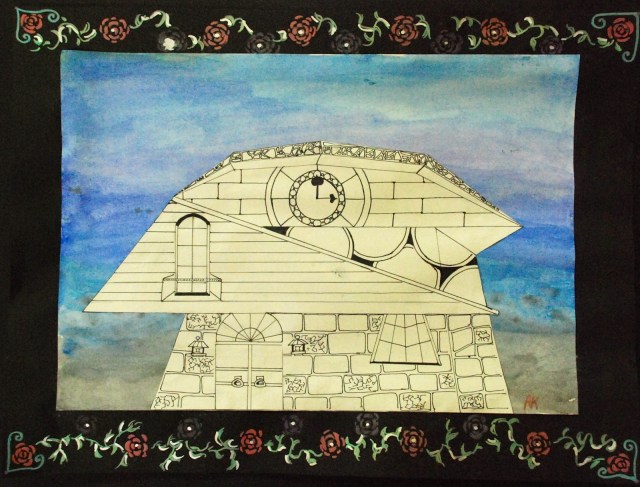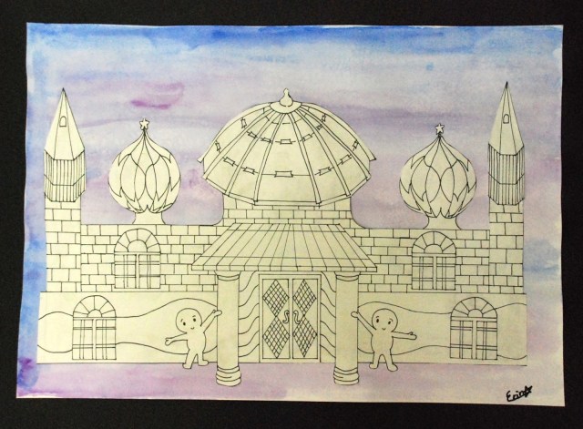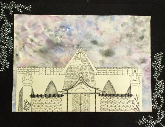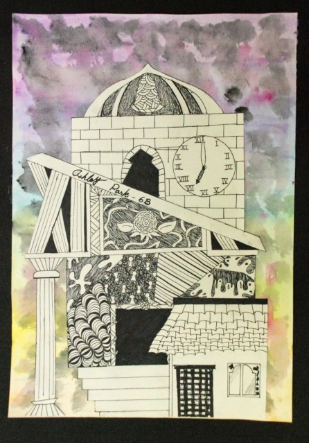 After a change in scheduling this year, I now have my 6th grade students for then entire year instead of just 9 weeks at a time. The added class time has provided lots of opportunities for bringing back some of my favorite projects that we just didn’t have time for over the last two years…like the aluminum armor project and this architecture project that I also taught in Honduras and Ecuador. The students researched a variety of different architectural styles and then designed unique buildings with lots of windows, doors, roofs, textures, etc. We painted watercolor backgrounds to enhance the idea of space in the scene. Check ’em out!