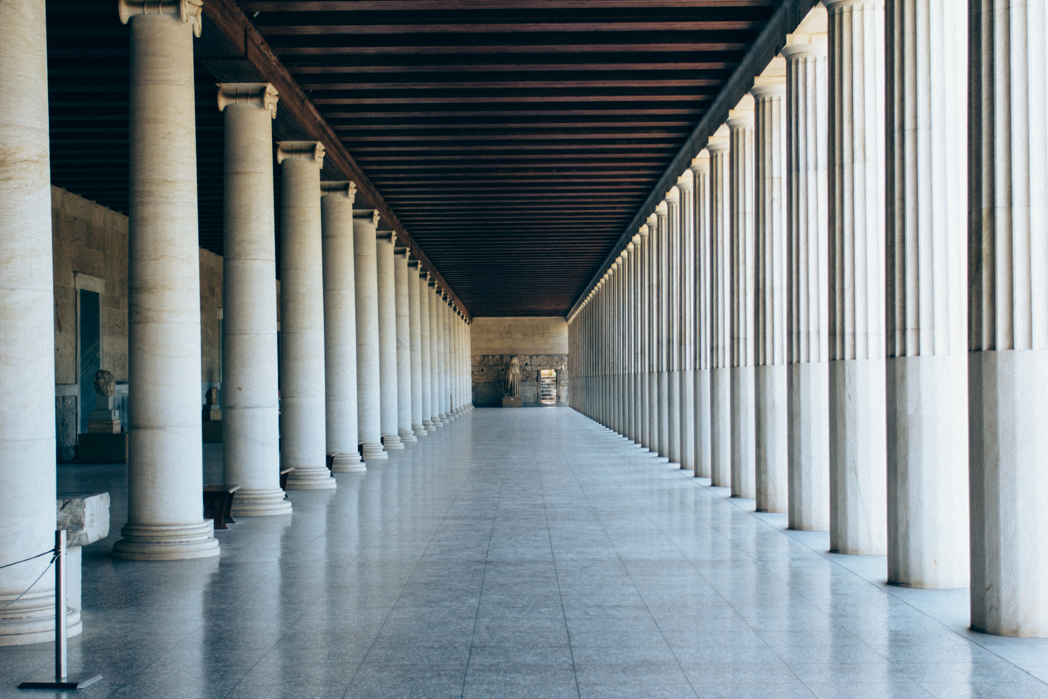 Stoa of Atallos. Rebuilt in the 20th century but was originally designed to provide shade for people to hang out and talk. Apparently the columns are smooth at the bottom to allow people to lean on them, which was encouraged here but different at temples where the fluting extended to the floor.