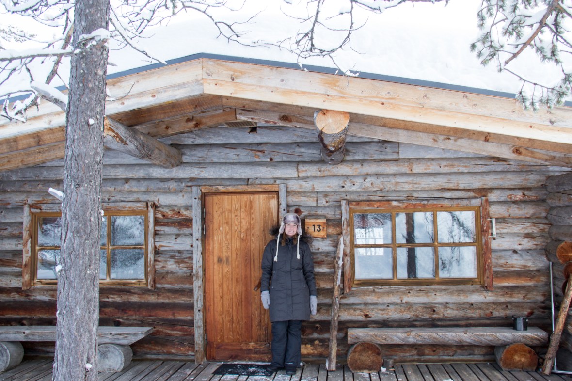 Caitlin in front of our cabin.