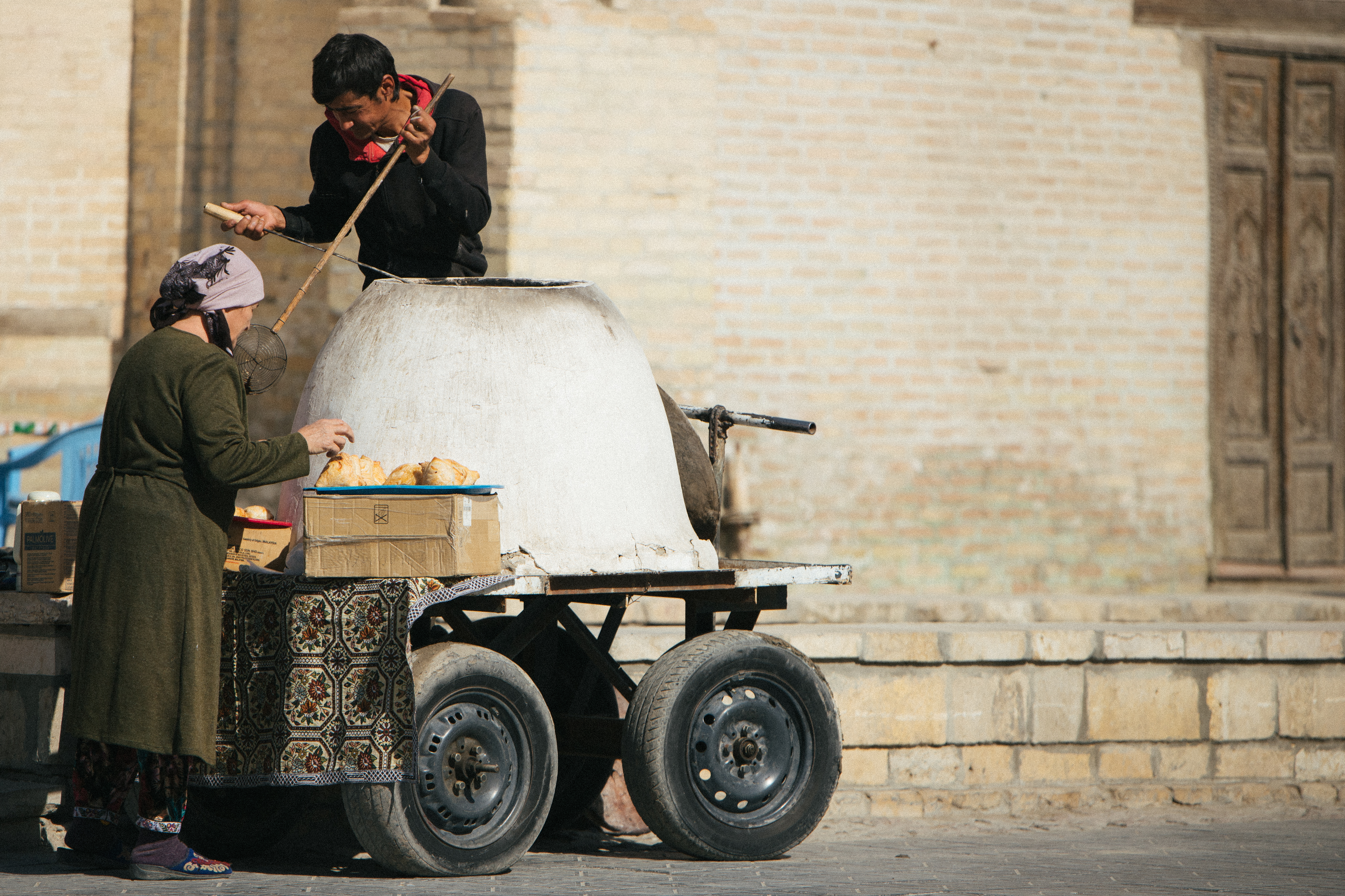 Uzbekistan-61 December 11, 2017 • 5319 × 3546 • Uzbekistan: The People Samsa vendor. They stick them to the walls of the oven to cook.